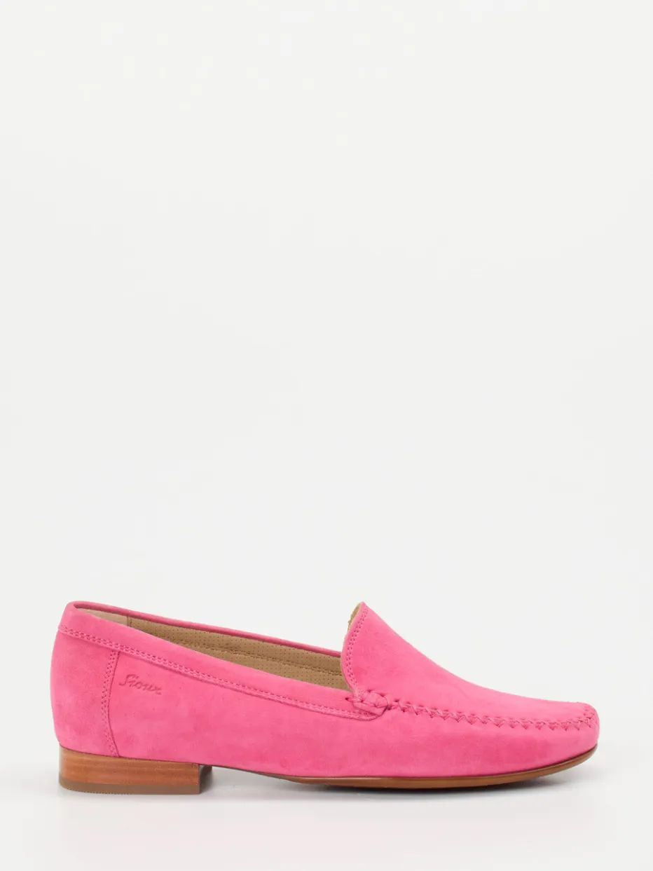 Dieser klassische Mokassin von Sioux kombiniert samtweiches Veloursleder mit einer femininen Trendfarbe – ideal für stilvolle Looks mit Komfortfaktor.