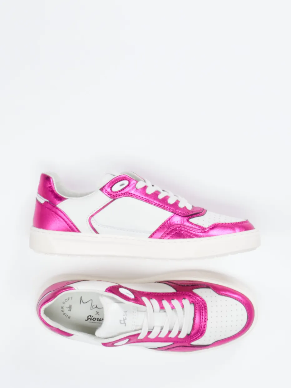 Glanzstück der Saison.Der Damen-Sneaker von Sioux verbindet Komfort mit auffälliger Optik. Ideal für Freizeit oder den Abend in der Stadt: Glänzendes Lammnappa trifft auf pinke Metallic-Akzente und eine perforierte Zehenpartie. Die flache Silhouette mit gepolstertem Einstieg sorgt gemeinsam mit der rundum vernähten Gummisohle für angenehmes Tragegefühl. Im Inneren reguliert ein Frotteefutter das Klima, während das herausnehmbare Lederfußbett Platz für eigene Einlagen bietet. Das Retro-inspirierte Design mit Streetwear-Einfluss passt perfekt zu Jeansjacke oder Midirock. Ein Sneaker mit Komfort-Kompetenz und expressivem Trendgespür der Marke Sioux.