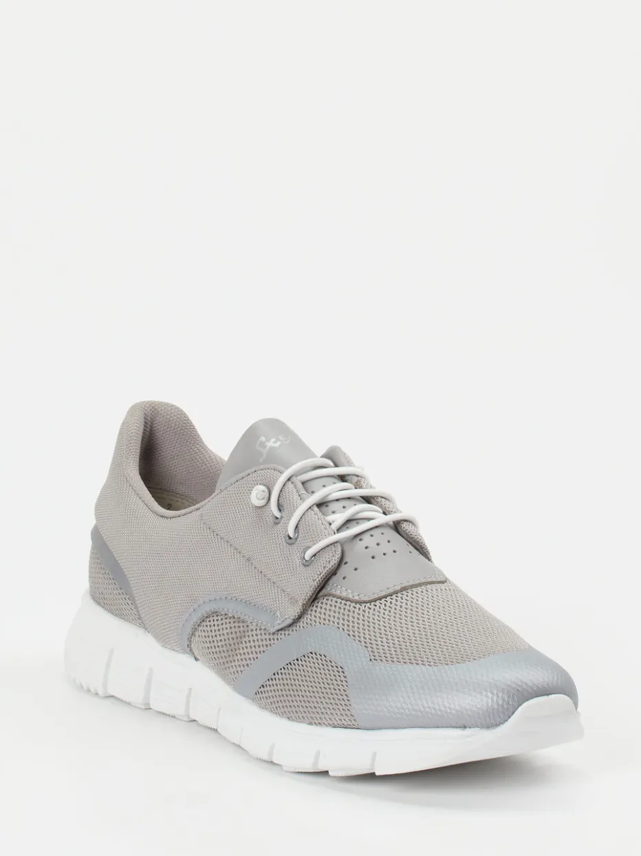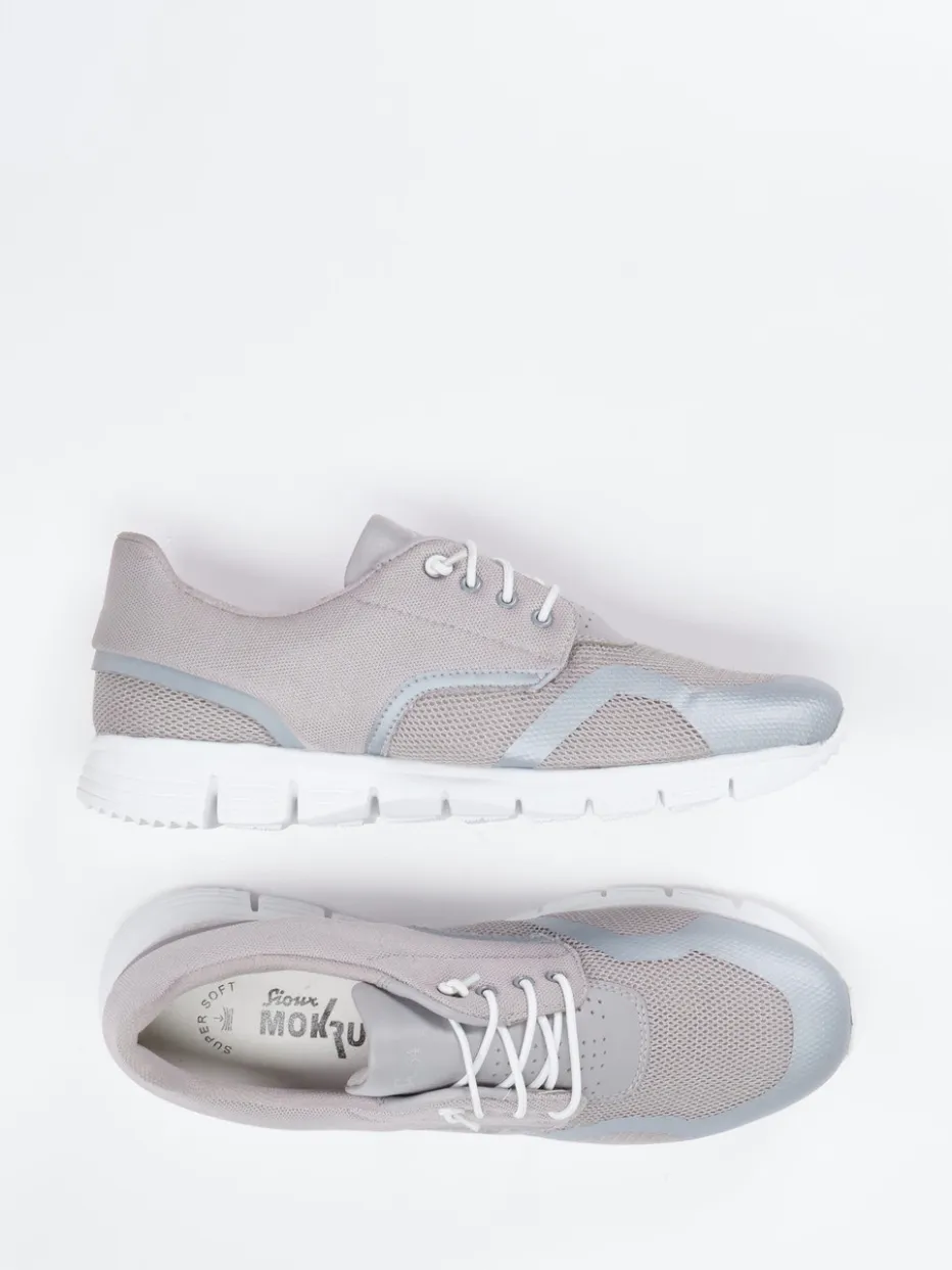 Minimalismus trifft Komfort.Der Sneaker von Sioux vereint moderne Alltagstauglichkeit mit einem cleanen Design. Für entspannte Stadtspaziergänge oder aktive Tagesprogramme bietet dieser Low-Top Sneaker ein luftiges Mesh-Textil als Obermaterial mit matter Oberfläche und tonalen Overlays. Die hellgraue Farbgebung mit silbernen und weißen Akzenten unterstreicht die sportlich-dynamische Form. Eine ultraleichte, flexible Gummisohle unterstützt einen bequemen Auftritt – optimal für Freizeit wie Fitness. Der verstärkte Fersenbereich und die weiße Schnürung setzen dezente Highlights. Minimalistische Streetwear und funktionale Ästhetik verschmelzen in diesem Kombitalent. Sioux verbindet technische Leichtigkeit mit zeitloser Modernität.