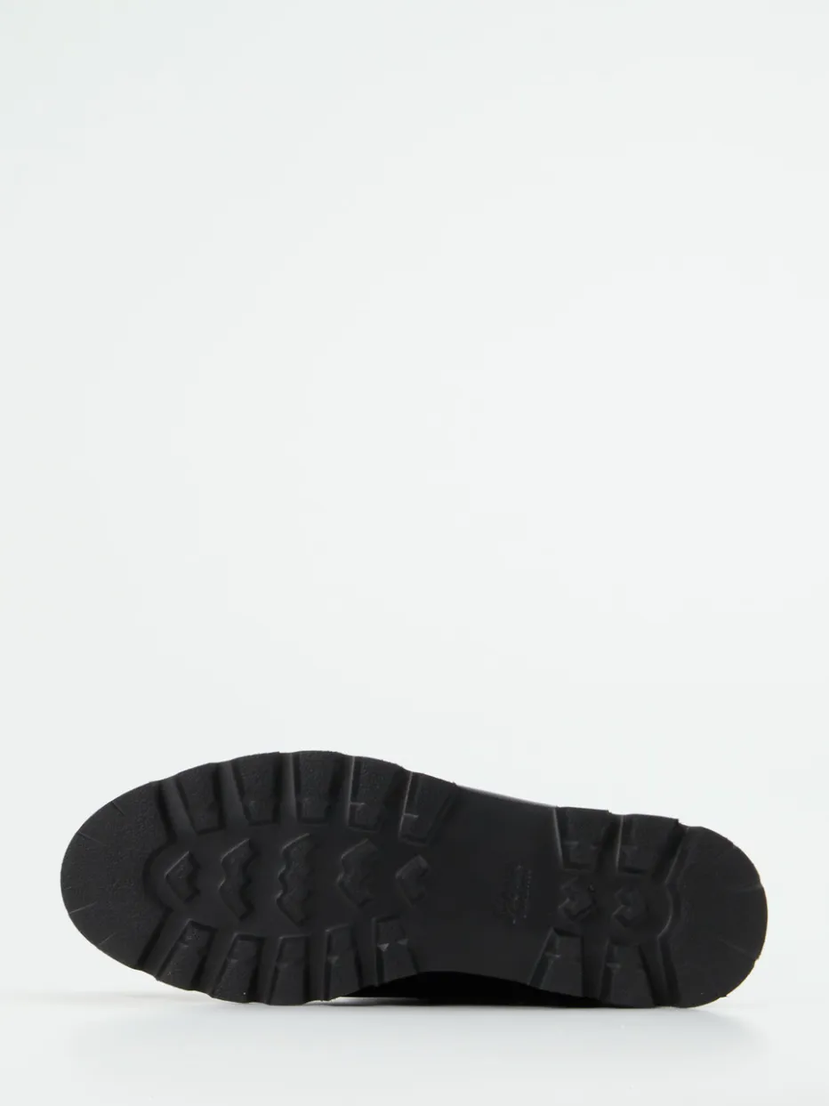 Wärme trifft Wetterfestigkeit.Die Marke Sioux präsentiert einen Winterstiefel für Damen, der Funktion und Design raffiniert kombiniert. Kalte Tage in Alltag oder Outdoor werden mit der Kombination aus schwarzem Glattleder und gestepptem, wind- und wasserdichtem Nylon angenehm bewältigt. Die kuschelige Lammfellfütterung sorgt für ein wärmendes Tragegefühl, während die griffige Gummisohle Trittsicherheit auf rutschigem Untergrund bietet. Optisch überzeugt der Stiefel mit seiner geradlinigen Silhouette, Ton-in-Ton-Steppung und einem dezenten Metall-Logo am Schaft. Der seitliche Reißverschluss erleichtert das Anziehen und betont die klar trendbewusste Gorpcore-Anmutung. Ein komfortorientierter Winterbegleiter mit zuverlässiger Schutzfunktion und urbaner Stepp-Optik.