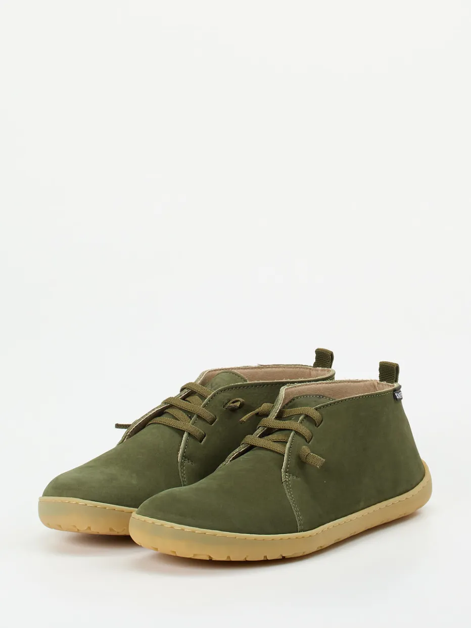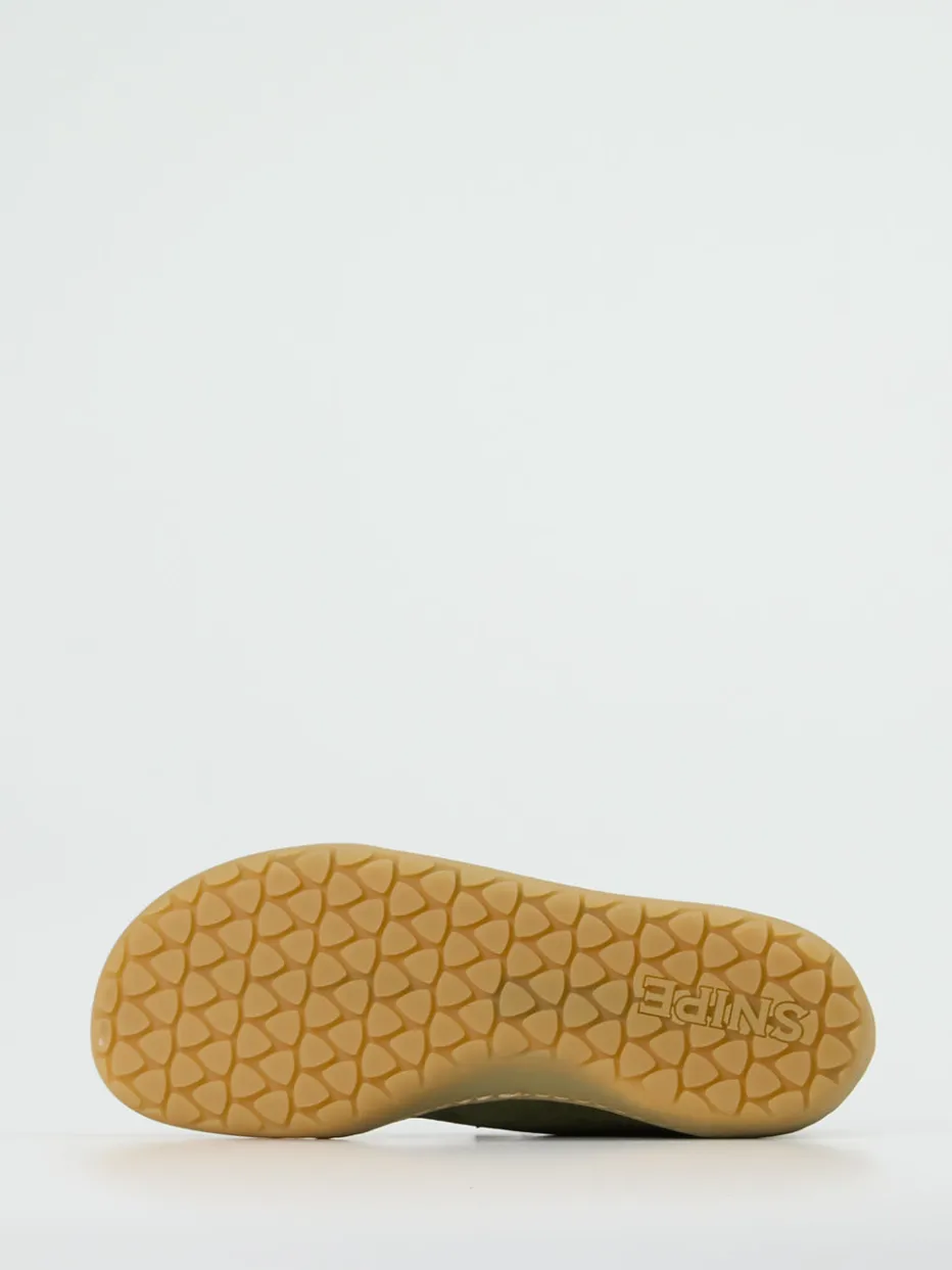 Natürlich & bequem in Szene gesetzt.Der Schnürschuh der Marke Snipe vereint minimalistisches Design mit hohem Tragekomfort. Perfekt für naturverbundene Alltagsmomente bietet der knöchelhohe Unisex-Schuh Funktion und Stil gleichermaßen. Aus samtig mattiertem Nubukleder gefertigt, zeigt sich das Modell in ruhigem Olivgrün. Die profilierte, honigfarbene Gummisohle unterstützt ein flexibles Laufgefühl, das durch die barfußähnliche Konstruktion zusätzlich verstärkt wird. Tonale Nähte, Zuglasche hinten sowie ein dezentes Markenlogo vervollständigen den modernen Casual-Look. Der Schuh ist waschbar und nachhaltig inspiriert – passend zu natürlichen Farbwelten der aktuellen Saison. Snipe verbindet zeitlose Alltagstauglichkeit mit verantwortungsbewusstem Stil.