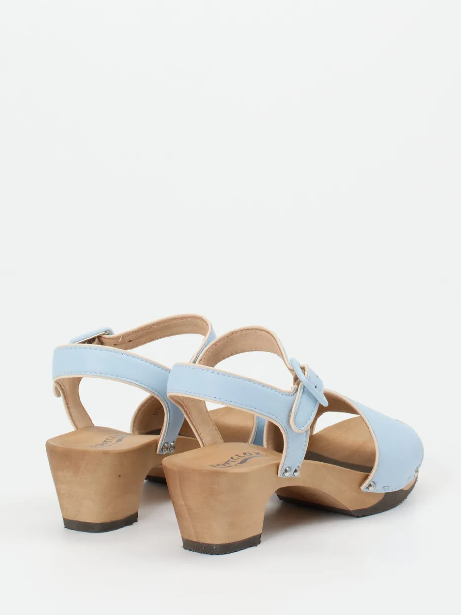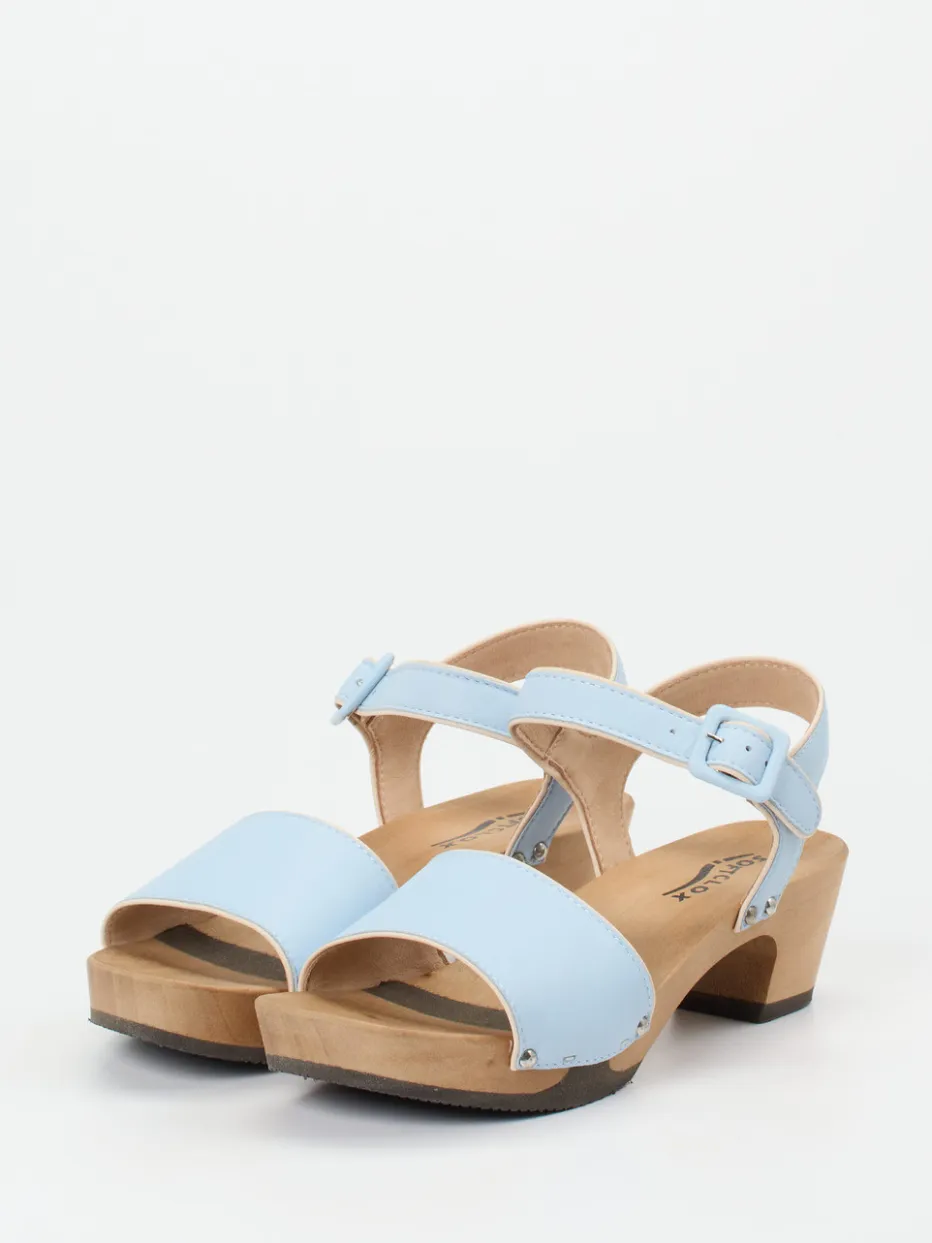 Pastell trifft Retro-Komfort.Softclox interpretiert die klassische Clogsandale in femininer Leichtigkeit. Ideal für entspannte Sommertage: Die hellblaue Plateausandalette erfüllt durch ihr Lammleder in matter Optik formschöne und tragefreundliche Ansprüche. Silberfarbene Nieten unterstreichen den Craftcore-Trend, während die ergonomisch geformte Holzsohle mit elastischem Element Flexibilität verspricht. Der verstellbare Riemen mit lederbezogener Dornschließe sorgt für passgenauen Halt, ergänzt durch den stabilen Blockabsatz. Besonders in Kombination mit Leinenoutfits wirkt das Modell stilsicher und urban relaxt. Charakteristisch Softclox – Komfort trifft Designbewusstsein.