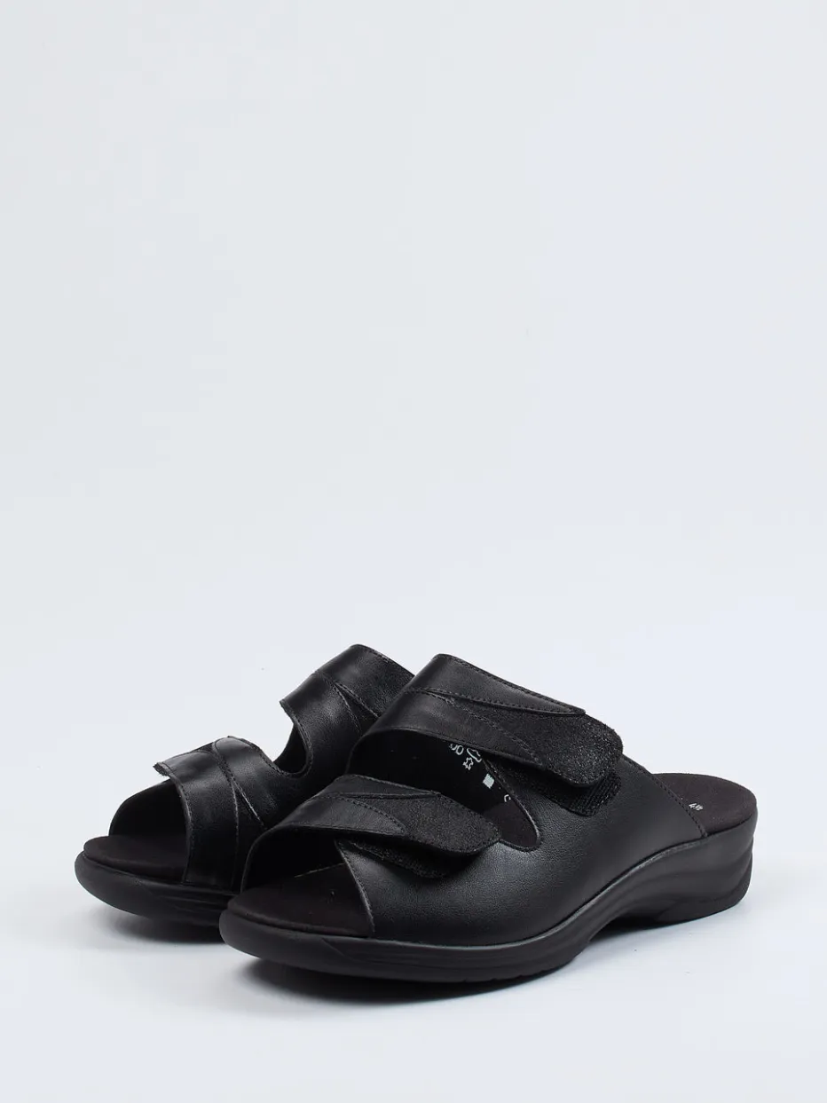 Die ergonomisch geformte Komfort-Pantolette von Solidus kombiniert hochwertiges Kalbleder mit individuell verstellbaren Klettverschlüssen und einer weich gepolsterten Innensohle.