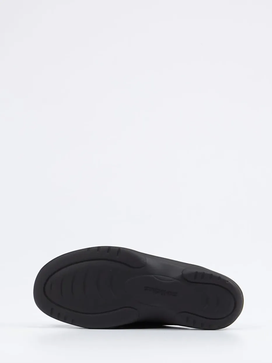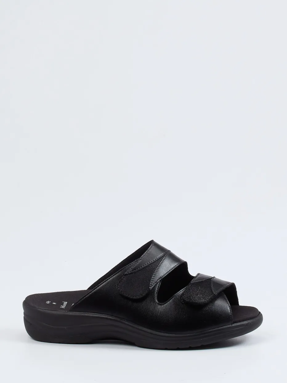 Bequem durch Alltag und Zuhause.Solidus präsentiert mit dieser Damen-Komfortpantolette ein Modell, das Stil und Funktion vereint. Für das tägliche Tragen in Freizeit und Zuhause konzipiert, überzeugt die Pantolette durch hochwertiges, mattes Kalbleder mit leichtem Metallicfinish. Drei individuell einstellbare Klettverschlüsse ermöglichen eine exakte Anpassung – stimmig ergänzt durch eine gepolsterte, austauschbare Innensohle und ein ergonomisch geformtes Fußbett. Die schwarze Farbgebung unterstreicht den minimalistischen Look, während die flexible PU-Profilsohle für Halt und ein angenehmes Laufgefühl sorgt. Ideal für komfortorientierte Outfits mit entspannter Eleganz. Solidus steht hier für hochwertigen Komfort mit orthopädischem Anspruch und ästhetischer Klarheit.