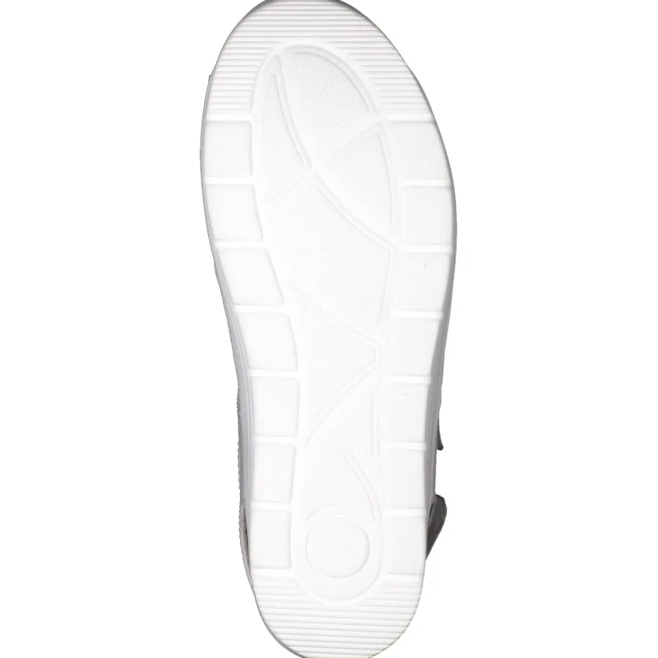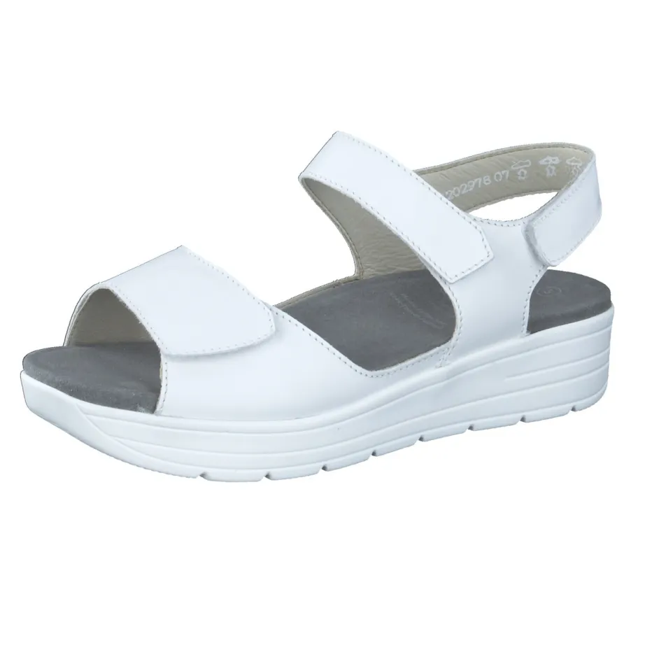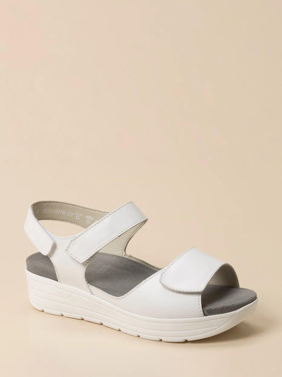 Komfort neu definiert.Solidus präsentiert eine feminine Komfortsandale, ideal für entspannte Tage in Freizeit oder Alltag. Das samtig-weiche Kalbleder in klarem Weiß sorgt zusammen mit einem ergonomisch geformten Fußbett für ein angenehmes Tragegefühl – auch bei langem Gehen. Eine profilierte, flexibel gestaltete Synthetiksohle und verstellbare Klettverschlüsse ermöglichen optimalen Halt. Die offene, ergonomisch designte Silhouette vereint Funktionalität mit minimalistischer Ästhetik. Leicht strukturierte Ton-in-Ton-Nähte setzen dezente Highlights. Als Teil aktueller „Quiet Luxury“-Trends überzeugt sie auch stilistisch. Solidus steht für anspruchsvolle Passform in Verbindung mit zeitloser Komfortästhetik.