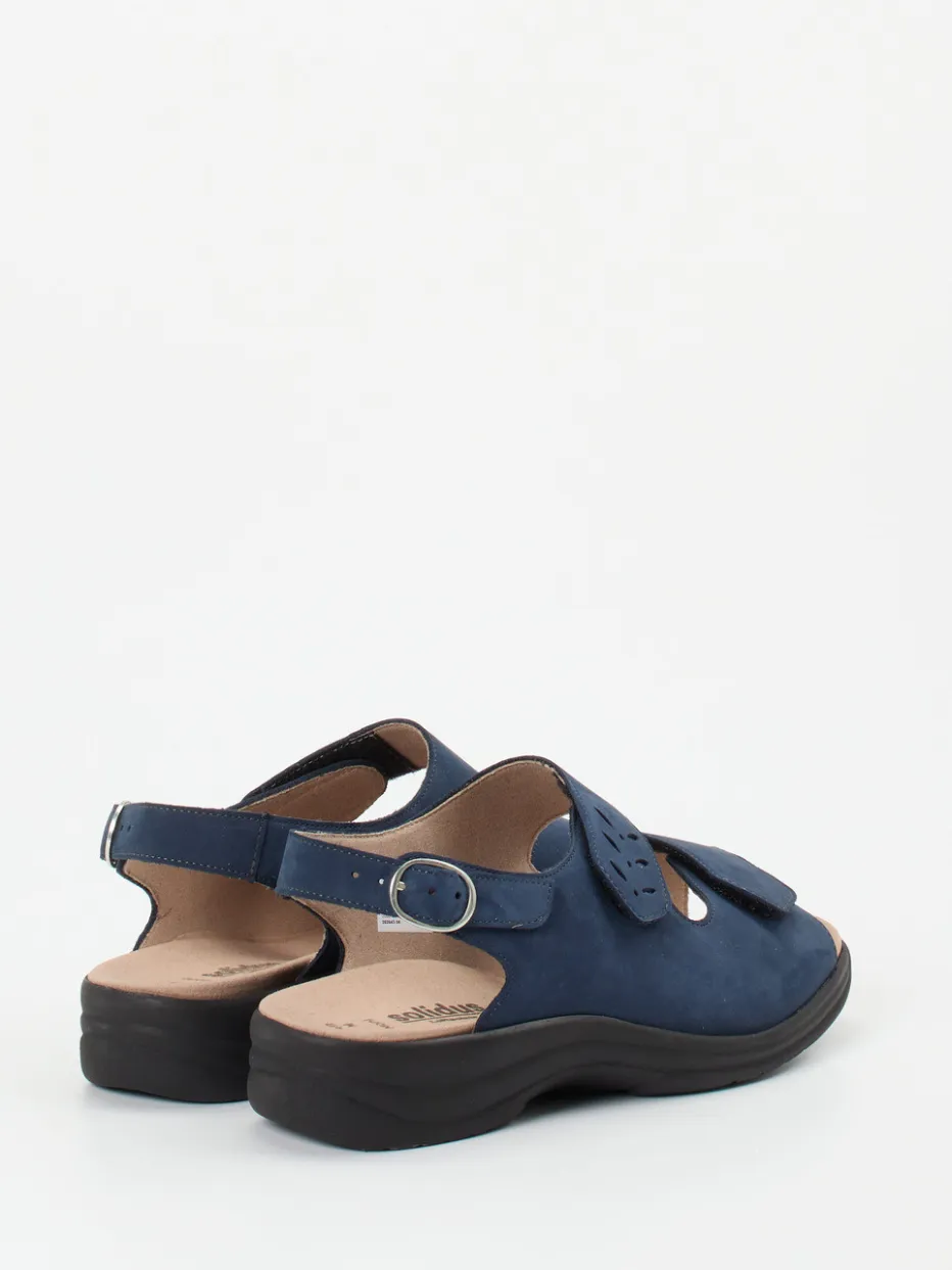 Alltagstauglicher Komfort mit ergonomischer Passform.Solidus präsentiert mit dieser Komfortsandale ein vielseitiges Damenmodell für Alltag und Freizeit. Das atmungsaktive Nubukleder, samtig angeschliffen, passt sich durch zwei Klettverschlüsse und eine Metallschnalle perfekt an den Fuß an. Die dunkelblaue Farbgebung, gekoppelt mit feinen Lochstanzungen und Ton-in-Ton-Nähten, verleiht dem Design eine dezente Eleganz. Die weiche PU-Sohle sorgt in Kombination mit dem herausnehmbaren Luftpolster-Fußbett für exzellenten Tragekomfort – auch bei orthopädischen Anforderungen. Ideal für ein gesundheitsbewusstes, funktionales Sommer-Outfit. Die Marke steht für fußgesunde Qualität und individuelle Komfortanpassung.