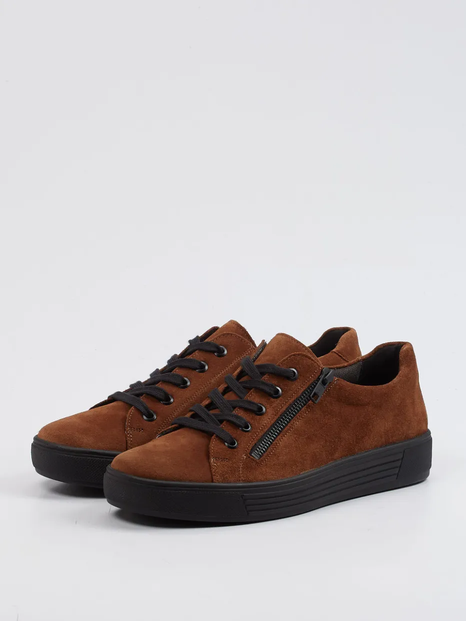 Bequemer Stil für den Alltag.Solidus präsentiert mit diesem Low-Top-Sneaker aus der Hazel-Form einen komfortbetonten Damenschuh mit hochwertigem Anspruch. Das mittelfarbene Veloursleder besitzt eine samtige Haptik und trifft auf eine klassische Silhouette mit schwarzer Schnürung sowie seitlichem Reißverschluss für leichtes Anziehen. Die profilierte Gummisohle bietet angenehm flexiblen Halt bei jedem Schritt. Mattschimmernde Oberflächen sowie Ton-in-Ton-Nähte unterstreichen den unaufgeregten Minimalismus im Retro-Stil. Die herausnehmbare, mit Leder beschichtete Einlegesohle macht ihn ideal für eigene Einlagen und sensible Füße. Passt hervorragend zu Casualwear in Naturtönen. Solidus-Komfort trifft auf urbanen Streetwear-Look – funktional, modern, hochwertig.