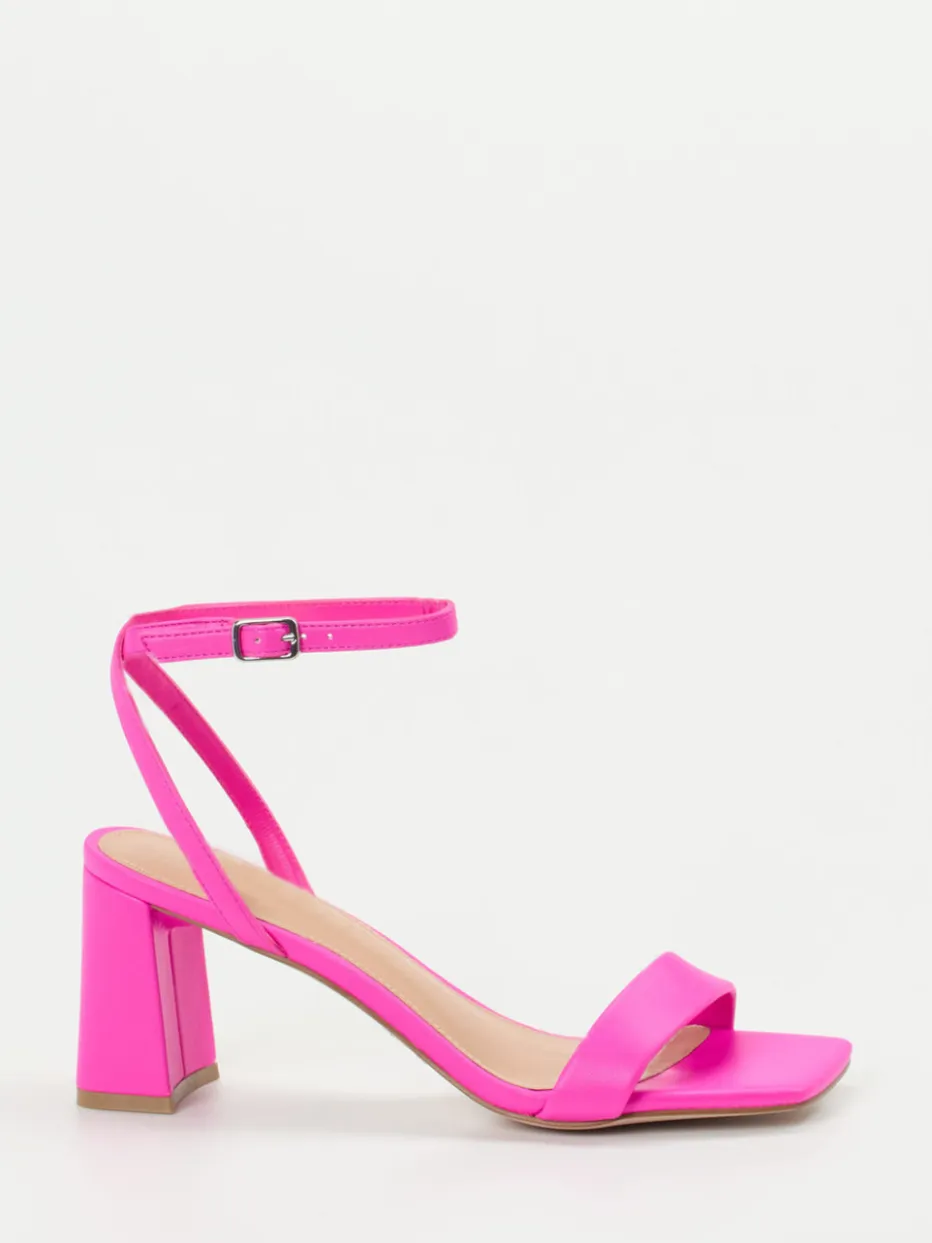 Diese Sandalette kombiniert die expressive Eleganz des Barbiecore-Trends mit einem stabilen Blockabsatz für souveränen Auftritt und hohen Tragekomfort.