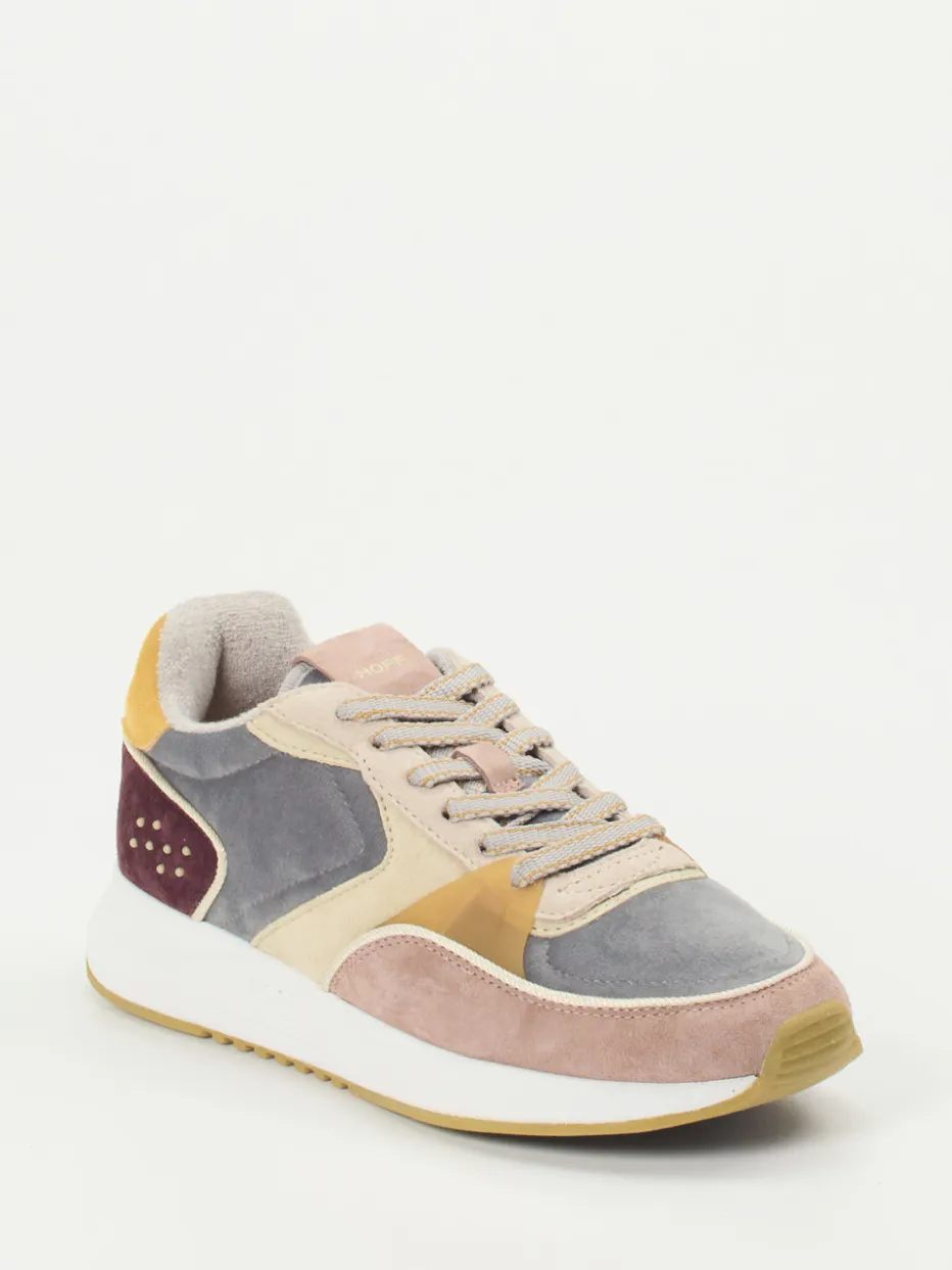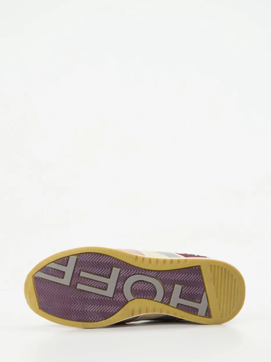 Statement mit Stilgefühl.THE HOFF BRAND interpretiert die Damen-Kategorie Retro-Sneaker mit dem Modell Surry Hills auffällig neu. Für entspannte City-Walks oder stilbewusste Freizeitlooks bietet der mehrfarbige Farbverlauf in Altrosa, Beige, Grau, Bordeaux und Senfgelb ein modisches Ausrufezeichen. Die Kombination aus Veloursleder mit samtig-matter Oberfläche und grauem Microfasertextil sorgt für Tiefe und Struktur. Eine gepolsterte Ferse mit Noppenmuster, farbige Schnürung und seitlich gesetzte Overlays liefern visuelles Volumen. Die schneeweiße Gummisohle mit Profil und Logo steht für Komfort. Das Design folgt dem Retro-Running-Trend mit klarer Streetstyle-Ausrichtung. Markant, durchdacht und trendorientiert – ein Sneaker im aktuellen Designkanon der Marke.