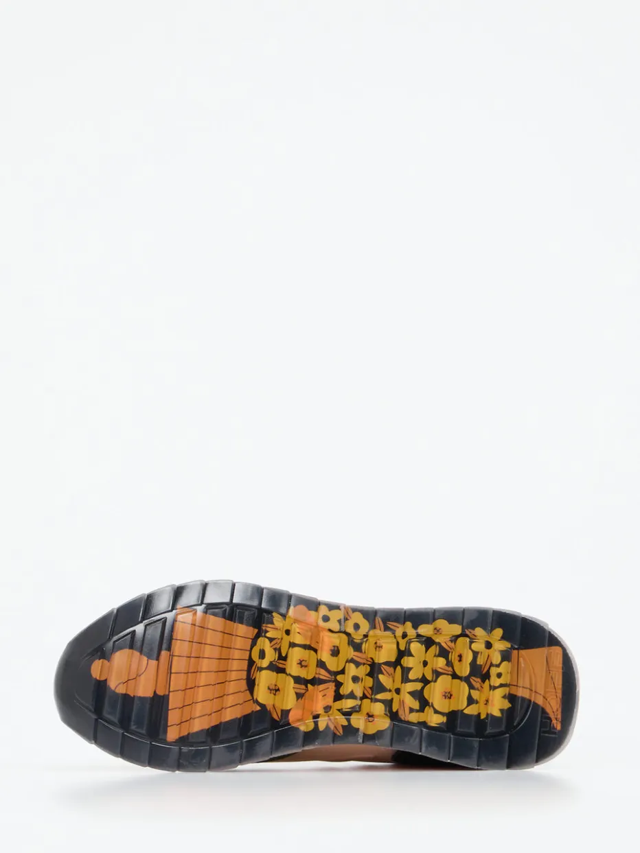 Expressives Design trifft Retro-Vibes.THE HOFF BRAND präsentiert mit diesem Sneaker ein farbintensives Statement für Modebewusste. Ideal für urbane Erkundungstouren oder stilvolle Reisen: Das Modell überzeugt mit einer Kombination aus Textil, samtig angeschliffenem Veloursleder und glänzenden Elementen, stimmig zusammengesetzt in einem mehrfarbigen Color-Blocking-Stil. Die dominierenden Töne Nude, Olivgrün, Senfgelb und Pastellrosa harmonieren mit floralen Sohlenprofilen und farblich abgesetzten Details. Die low-cut Silhouette und die gepolsterte Innensohle mit Memory Foam sorgen für hohen Komfort, während retro-inspirierte Kontraste ein spielerisches Y2K-Feeling vermitteln. Perfekte Ergänzung für trendbewusste Streetstyle-Outfits. Auffälligkeit und Tragbarkeit im markentypisch kreativen Gleichgewicht.