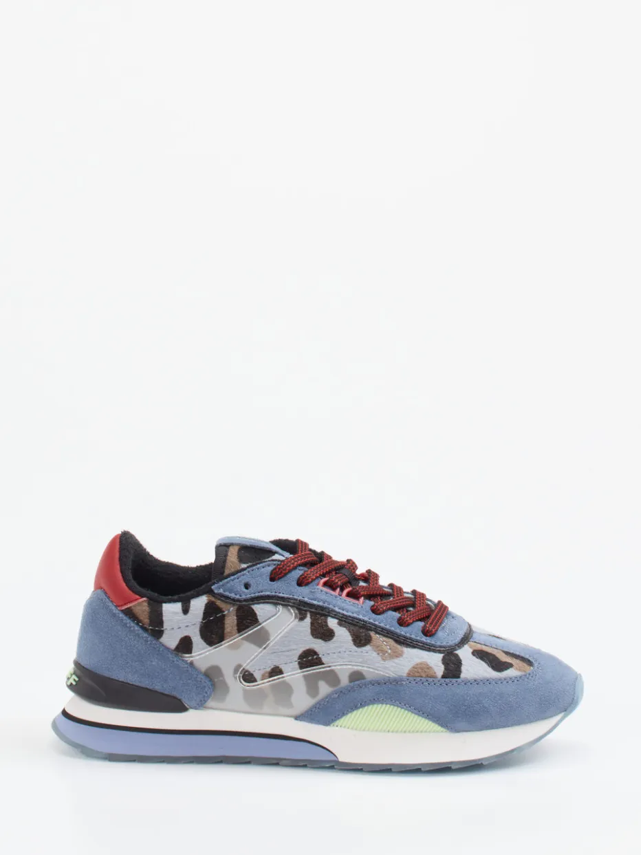 THE HOFF BRAND bringt mit diesem Retro-Sneaker ein unübersehbares Statement in die Damenkollektion. Ideal für urbane Styles im Alltag oder am Abend, vereint das Modell Veloursleder und Textil in einer spannenden Materialmischung mit samtiger, glatter oder strukturierter Oberfläche. Jeansblau dominiert den Look, begleitet von auffälligen Animal-Prints und transparenten Kunststoff-Overlays. Die asymmetrische Farbverteilung, kontrastfarbene Schnürsenkel und eine transluzente Gummisohle mit Leo-Muster unterstreichen den expressiven Charakter. Der gepolsterte Fersenbereich und das weiche Frotteefutter sorgen für Komfort. Lässt sich ideal zu sportiven Streetstyle-Windbreakern kombinieren. Design und Tragekomfort – unverkennbar THE HOFF BRAND.