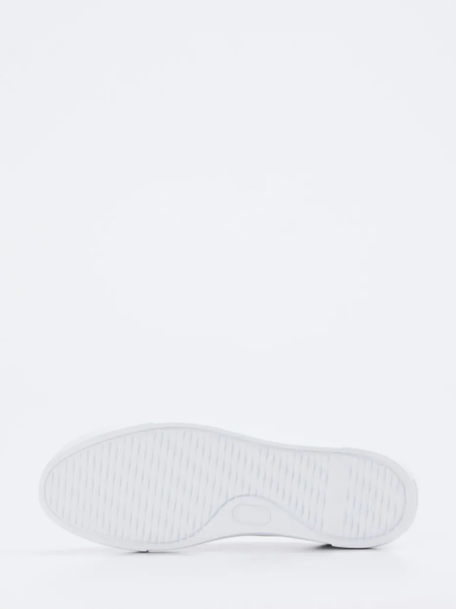 Retro-Futurismus trifft Streetstyle.Thierry Rabotin präsentiert einen Sneaker, der modischen Anspruch mit Komfort vereint. Ob beim Stadtbummel oder auf dem Weg zur nächsten Party – dieser Low-Top-Sneaker passt perfekt in urbane Alltagsszenarien. Silberfarbenes Metallicleder mit glänzender Oberfläche bildet gemeinsam mit weißen Mesh-Einsätzen in Wabenstruktur ein spannendes Materialspiel. Die abgerundete Silhouette wird durch türkisfarbenes Innenfutter aus softem Lammnappa und eine erhöhte, weiße Gummiplateausohle ergänzt. Auffällige Details wie die türkisfarbene Fersenstickerei setzen individuelle Akzente. Ein Top-Piece für Y2K-inspirierte Outfits. FIFTY-12 bietet hier ein Sneaker-Konzept mit maximalem Trendgespür und hohem Tragekomfort.