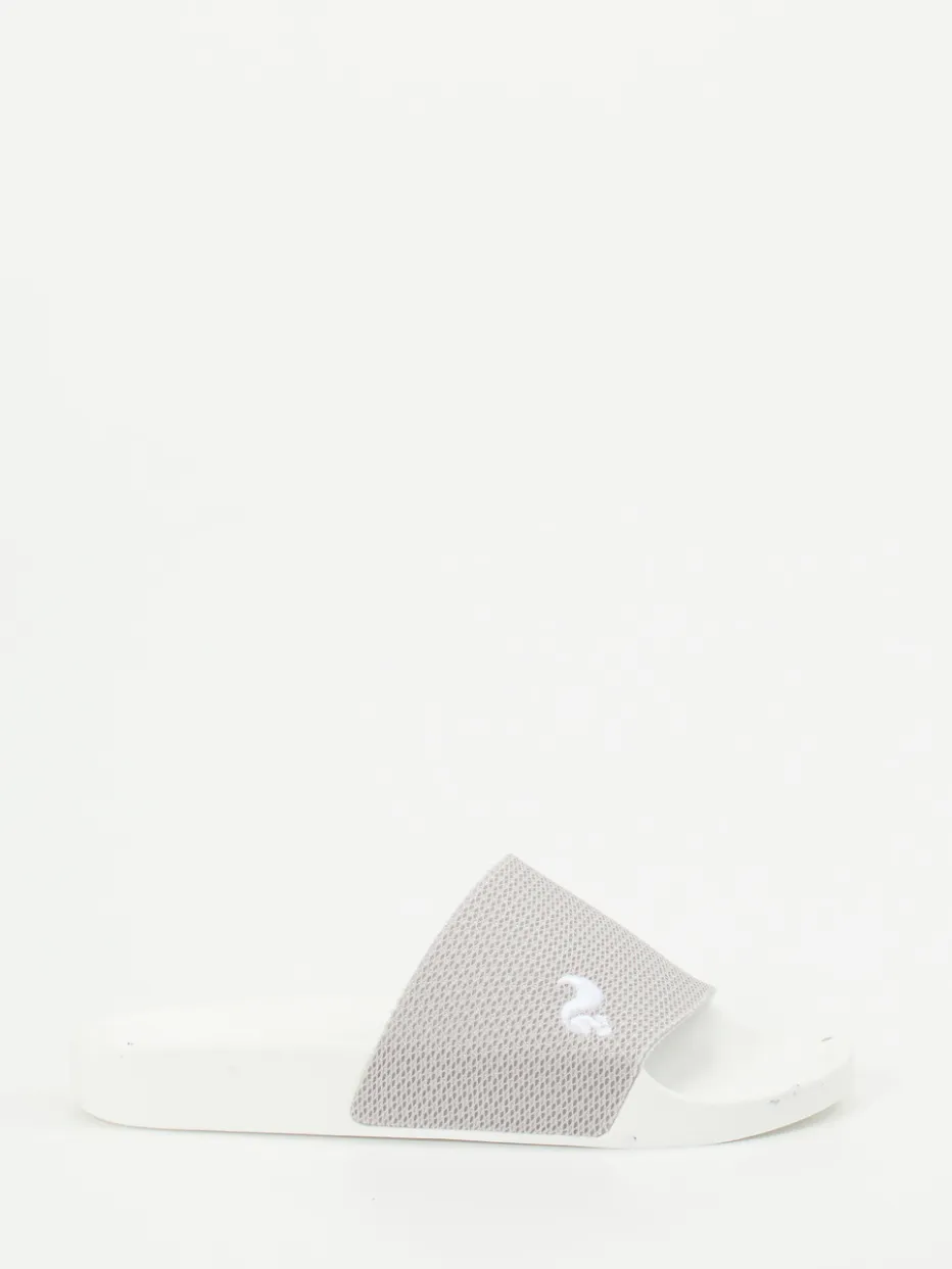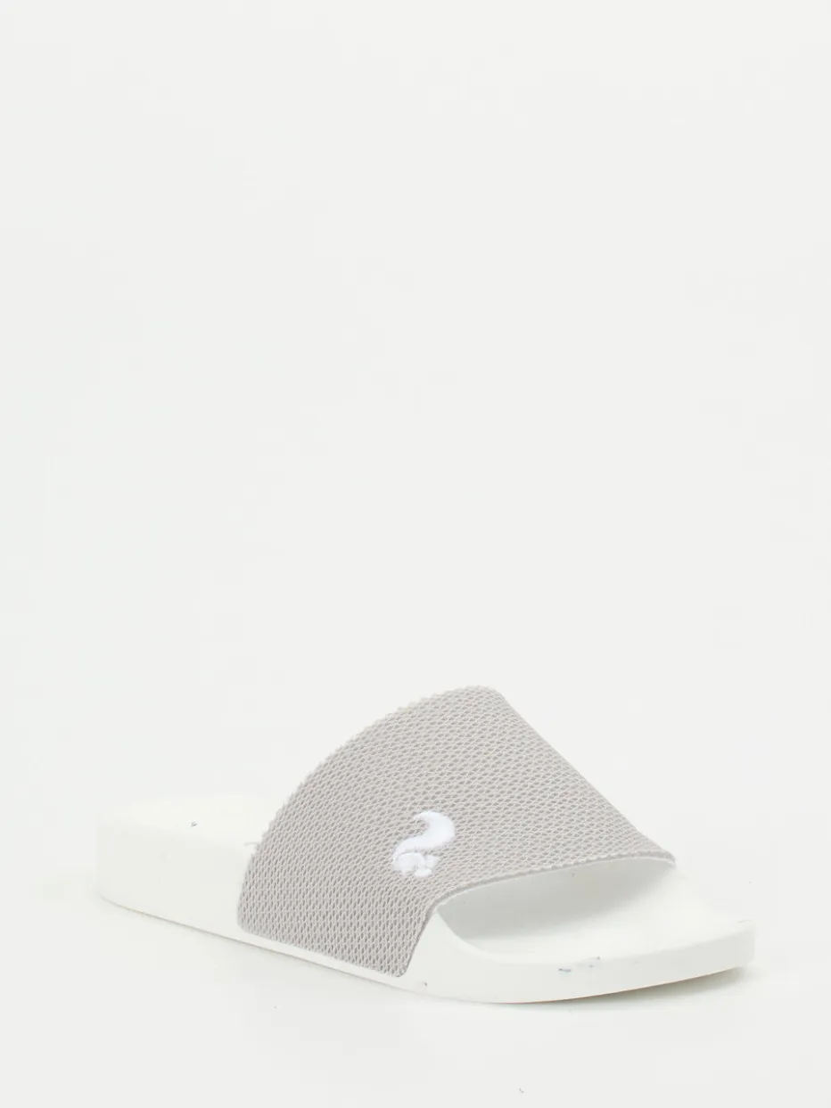 Veganer Minimalismus für warme Tage.Die Marke Thies präsentiert mit dieser Badepantolette eine stilvolle Verbindung aus Nachhaltigkeit und Komfort. Für entspannte Momente zu Hause, am Strand oder im urbanen Alltag sorgt die hellgraue Sandale durch ihr ergonomisch geformtes Fußbett und den gepolsterten Riemen aus recyceltem PET-Textil für angenehmen Tragekomfort. Das matte Finish und ein dezentes, gesticktes Logo in Weiß betonen den puristischen Look. Die profilierte Gummisohle aus Recyclingmaterial gibt sicheren Halt, auch auf nassen Böden. Inspiriert von Streetwear und Quiet Luxury zeigt dieses Modell modernen, bewussten Stil. Ein sommerlicher Begleiter mit nachhaltigem Anspruch – typisch Thies.