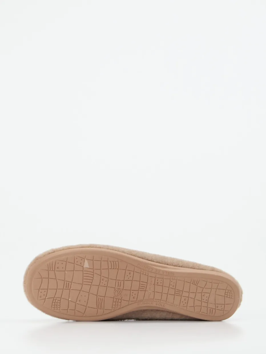 Floraler Komfort für gemütliche Stunden.Der Damen-Hausschuh von Thies interpretiert die klassische Ballerinaform neu – mit einem wärmenden Filz in stilvollem Beigebraun. Ideal für entspannte Tage daheim bietet das Modell angenehme Wärme und ein flauschiges Tragegefühl. Die klassische, rund gehaltene Schlupfform sorgt für bequemen Einstieg, die robuste Gummisohle für Rutschfestigkeit. Blickfang des Designs ist die applizierte Filzblume auf dem Vorderblatt sowie das gestickte Eichhörnchen-Logo seitlich. Kombiniert mit Loungewear oder Kuschelsocken entsteht ein harmonischer Home-Look im angesagten Cottagecore-Stil. Verlässliche Qualität mit nachhaltigem Anspruch – typisch Thies.