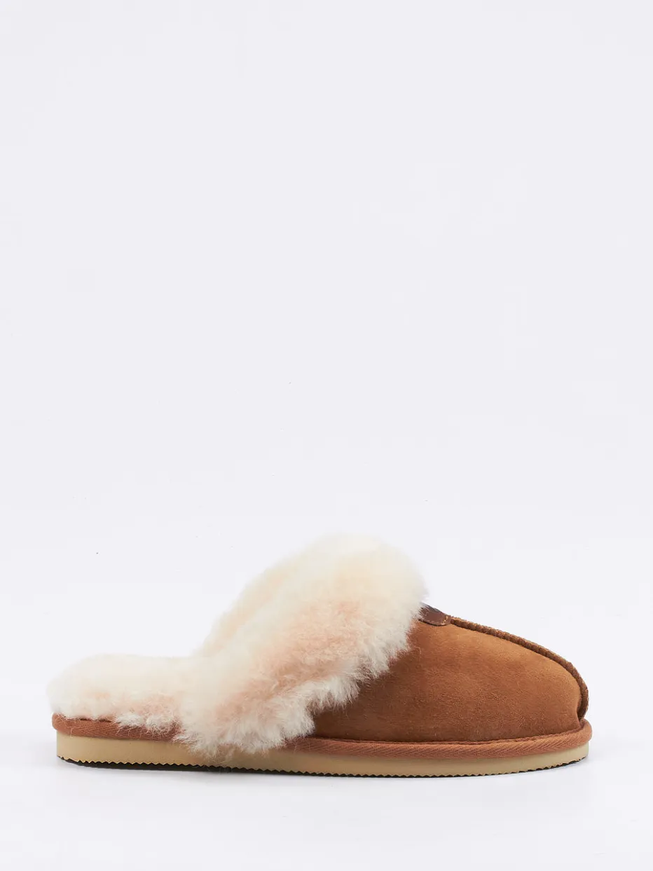 Wärmender Komfort in stilvollem Design.Thies präsentiert mit diesem Hausschuh einen gemütlichen Begleiter für Zuhause. Ideal für kalte Morgen und gemütliche Abende: Der offen geschnittene Pantoffel aus cognacfarbenem Veloursleder überzeugt mit samtiger Oberfläche und kuscheligem Lammfellfutter in Naturweiß. Die geschlossene Frontpartie und der offene Fersenbereich sorgen für schnelles Hineinschlüpfen, während eine rutschhemmende, beigefarbene Leichtzellsohle sicheren Halt im Haus gewährt. Sichtbare Nähte und ein dezenter Logo-Patch aus Leder unterstreichen den handwerklichen Charakter und die alpine Note inspiriert vom Natural-Cozy-Trend. Thies vereint nachhaltige Materialien mit traditionellem Wohlfühl-Design.