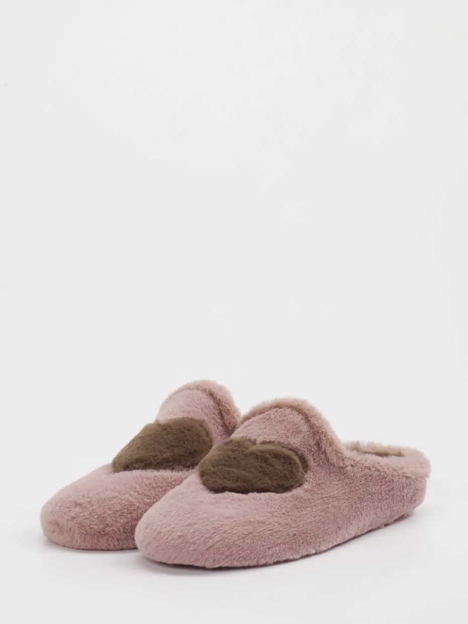 Die flauschigen Pantoffeln verbinden weiches Textil mit verspielten Details wie einer Herz-Applikation – ideal für stilvolle Entspannung im Alltag.
