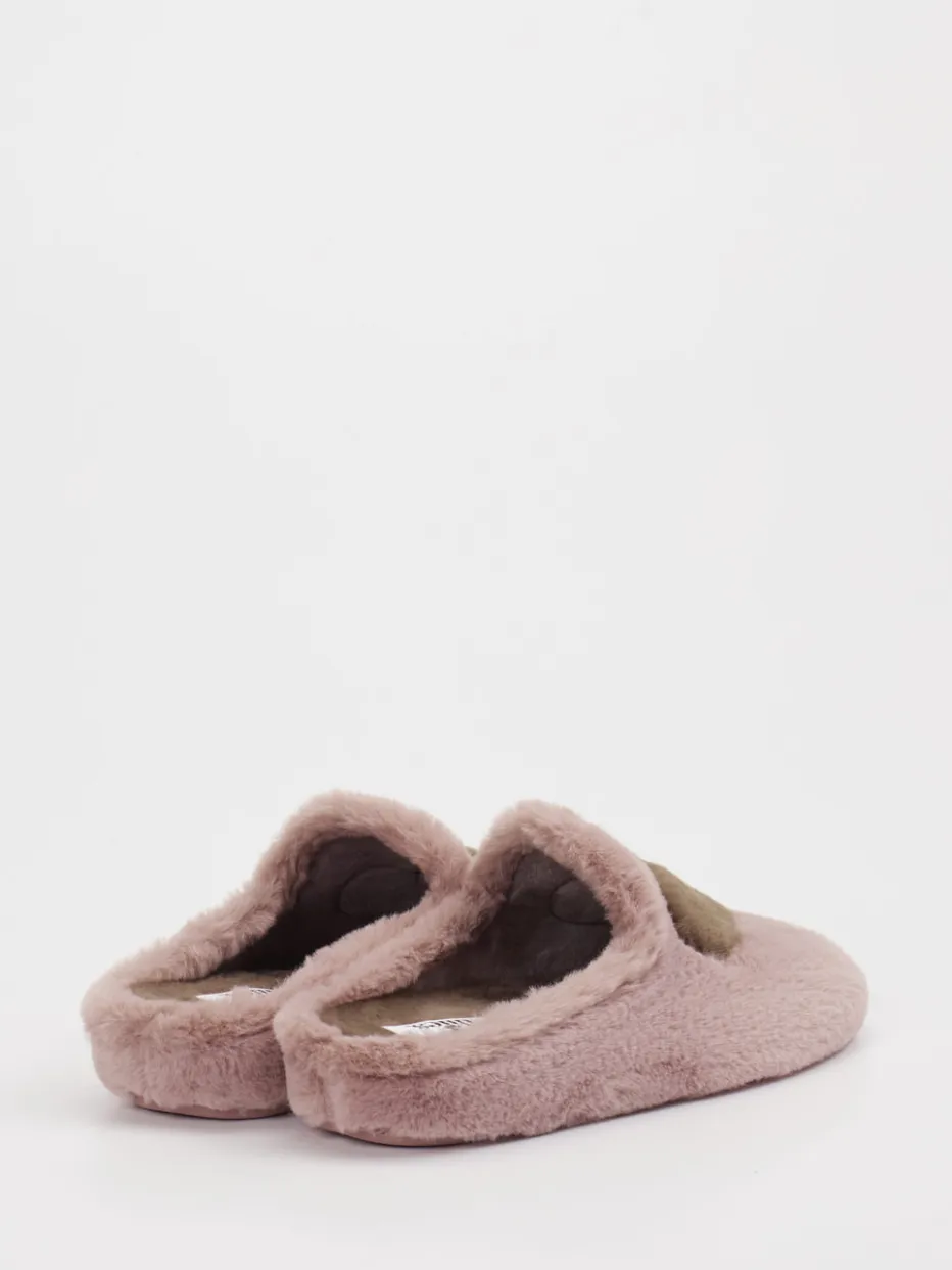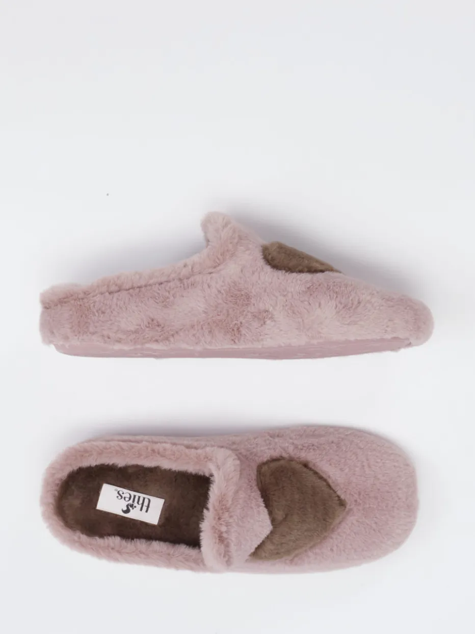 Verspielte Wärme für entspannte Stunden. Die Damen-Hausschuhe von Thies sind ideal für gemütliche Momente in den eigenen vier Wänden. Das flauschige Textilmaterial in Altrosa erzeugt eine besonders weiche Haptik, ergänzt durch eine gepolsterte Innensohle für zusätzlichen Komfort. Das Design mit geschlossenem Vorderbereich und offenem Fersenpart sorgt für unkompliziertes Hineinschlüpfen. Liebevoll integriert: die braune Herz-Applikation, die einen subtilen Kawaii-Touch verleiht. Die rutschfeste Gummisohle eignet sich perfekt für glatte Böden. Ideal zu Homewear oder einem wärmenden Hausanzug kombinierbar – für stilvollen Komfort im Loungewear-Trend. Thies steht hier für entspannten Chic mit liebevollen Akzenten.