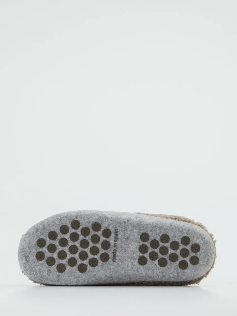 Kuscheligkeit trifft Alltagstauglichkeit.Die Marke Thies präsentiert komfortable Pantoffeln für entspannte Momente zu Hause. Mit ihrem flauschigen Textil aus Bio-Baumwolle in beigegrauem Teddyfleece erfüllen diese Schlupfschuhe das Bedürfnis nach Wärme, ohne Schwitzen zu verursachen. Ihre geschlossene Vorderpartie und der klassische Pantoffelschnitt sorgen für ein nostalgisch-gemütliches Tragegefühl. Dezente Ton-in-Ton-Stickerei unterstreicht den reduzierten Look, während die Filzsohle mit Anti-Rutsch-Funktion sicheren Halt auf glatten Böden bietet. Inspiriert von Scandi Comfort und Cottagecore repräsentieren sie den Loungewear-Trend der Saison. Perfekt kombinierbar mit Wollsocken oder flauschigem Hausanzug. Ein Hausschuh mit funktionalem Designfokus – gemütlich, nachhaltig, stilbewusst.