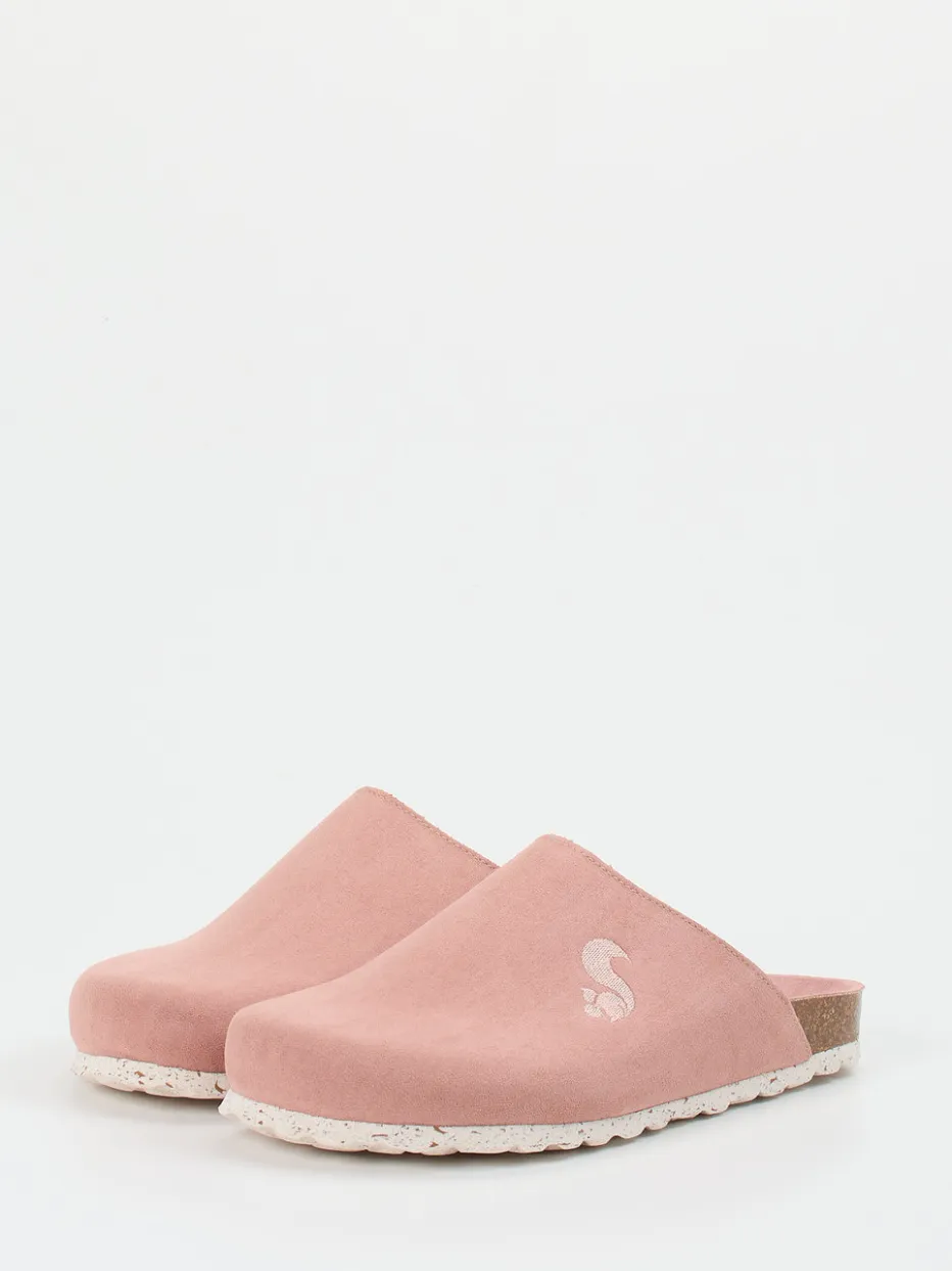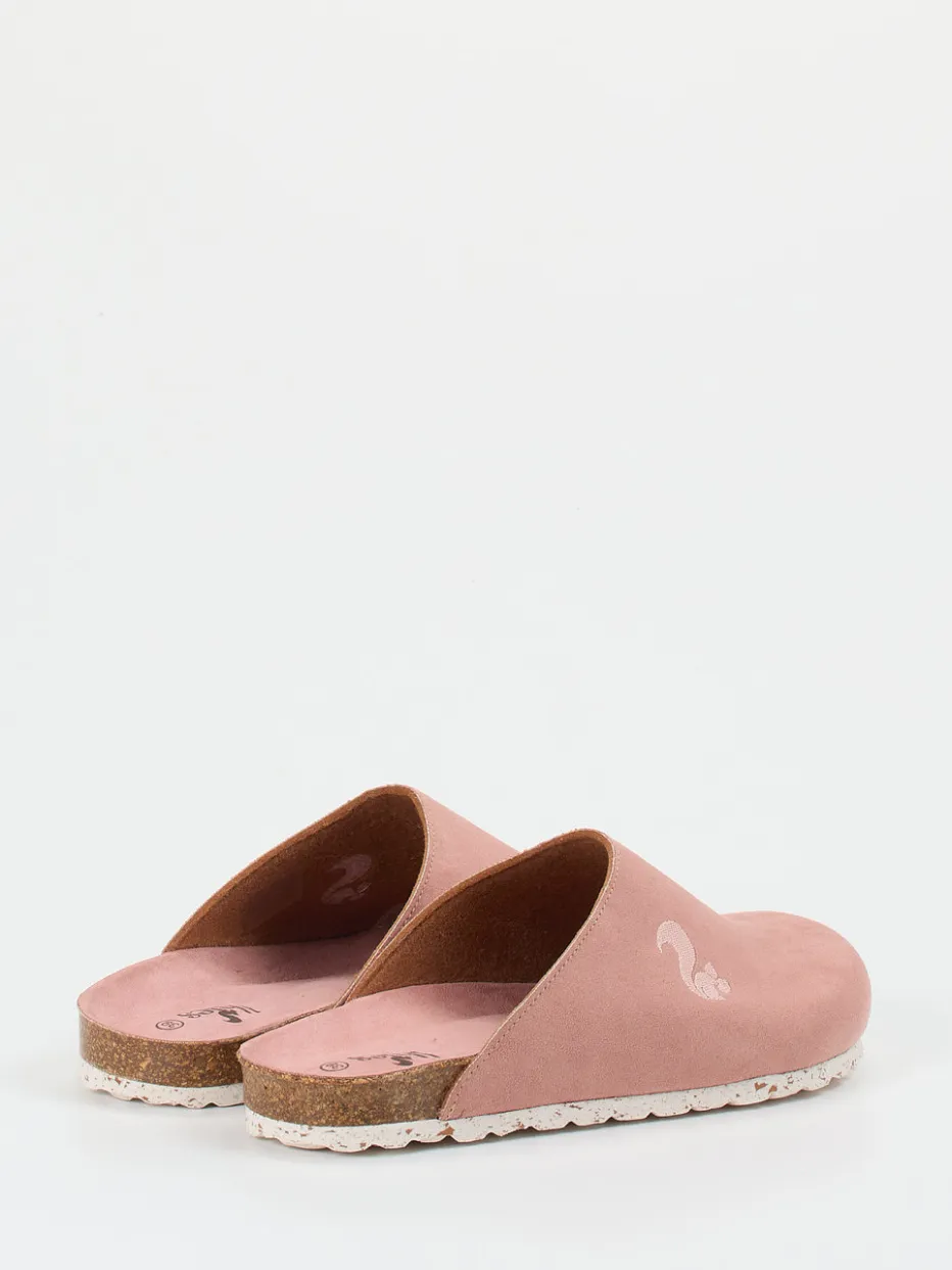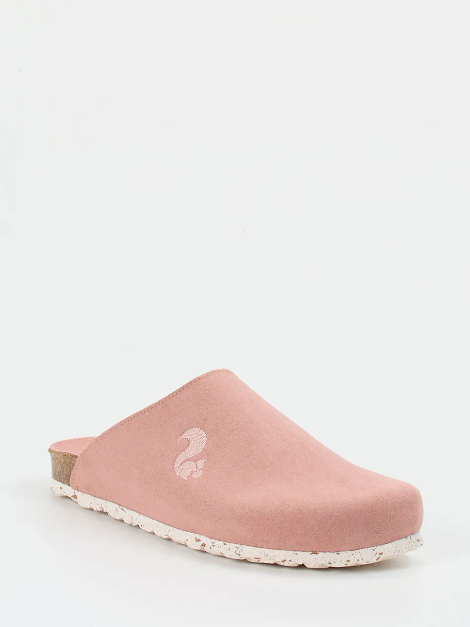 Entspannter Komfort in skandinavischem Stil.Thies präsentiert mit dieser Damen-Pantolette ein stilvolles Modell für entspannte Momente zuhause. Das Obermaterial aus samtig angeschliffenem Veloursleder in Altrosa verbindet ein dezentes Farbspiel mit einer edel-matten Oberfläche. Die geschlossene Vorderpartie geht in eine offene Fersenform über – typisch für die minimalistische Clog-Silhouette. Im Fokus steht das ergonomisch geformte Kork-Fußbett, ergänzt durch ein wärmendes Textilfutter und eine profilierte Gummisohle in Weiß. Die Ton-in-Ton Eichhörnchen-Stickerei am Spann setzt ein liebevolles Detail. Ideal kombinierbar mit Loungewear und weichen Materialien – skandinavisch inspiriert, komfortorientiert gedacht.