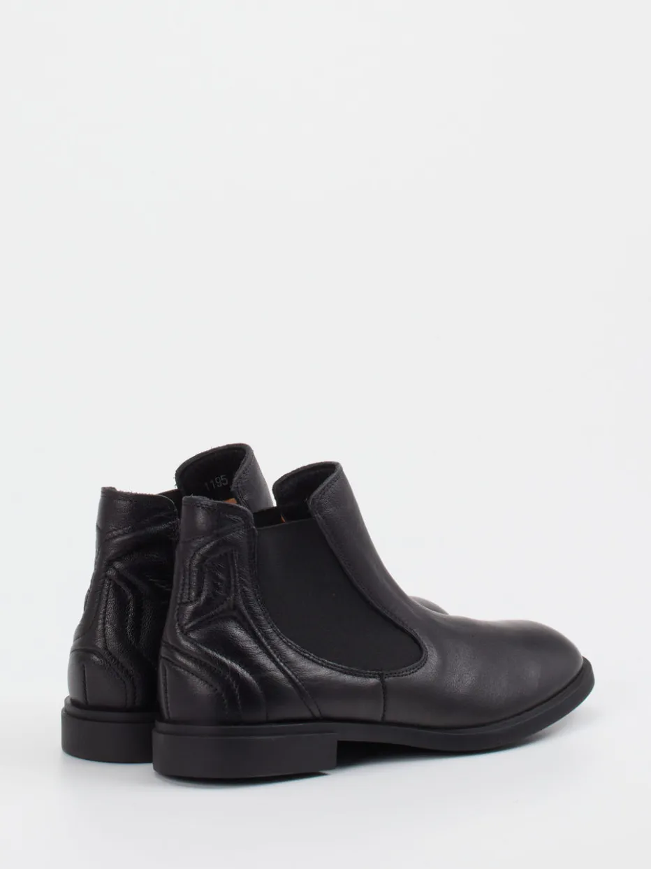 Elegant im Alltag unterwegs.Think präsentiert mit dieser Damen-Stiefelette ein klassisches Chelsea-Modell aus edlem, schwarzem Kalbleder. Die glatte, matte Oberfläche mit Ton-in-Ton-Nähten und dezenten Ziernähten an der Ferse vermittelt einen stilvollen, unaufgeregten Look. Seitliche Elastikeinsätze und eine innenliegende Zuglasche machen das Anziehen komfortabel und unkompliziert. Die griffig profilierte Gummisohle mit leichtem 2 cm Absatz unterstützt ein angenehmes Laufgefühl – ob im Büro oder in der Freizeit. Das Design orientiert sich an urbanem Minimalismus und der Trendströmung „Quiet Luxury“. Ein Modell mit typischer Think-Kompetenz für Komfort und zeitlose Alltagstauglichkeit.