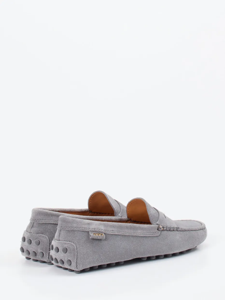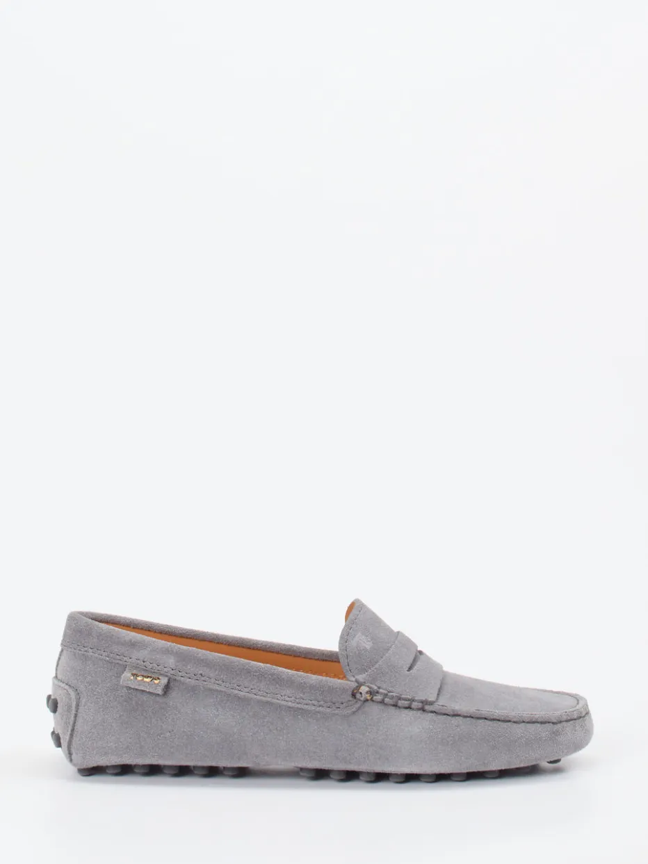 Eleganz trifft zurückhaltenden Luxus.Tod’s präsentiert mit diesem Damen-Loafer ein Modell, das klassischen Chic mit modernem Purismus verbindet. Ob im Büro oder beim Stadtbummel – der hellgraue Loafer aus samtig angeschliffenem Veloursleder bietet stilvollen Komfort. Die charakteristische Gummisohle mit Noppenprofil sorgt für sicheren Tritt, während Zierlasche und goldfarbenes Markenemblem dezente Akzente setzen. Die klassische, flache Silhouette reiht sich perfekt in die Trends „Quiet Luxury“ und „Soft Neutrals“ ein. Besonders harmonisch in Kombination mit Kaschmir und Lederaccessoires. Italienische Handwerkskunst mit ikonischer Sohlensignatur für anspruchsvolle Looks.