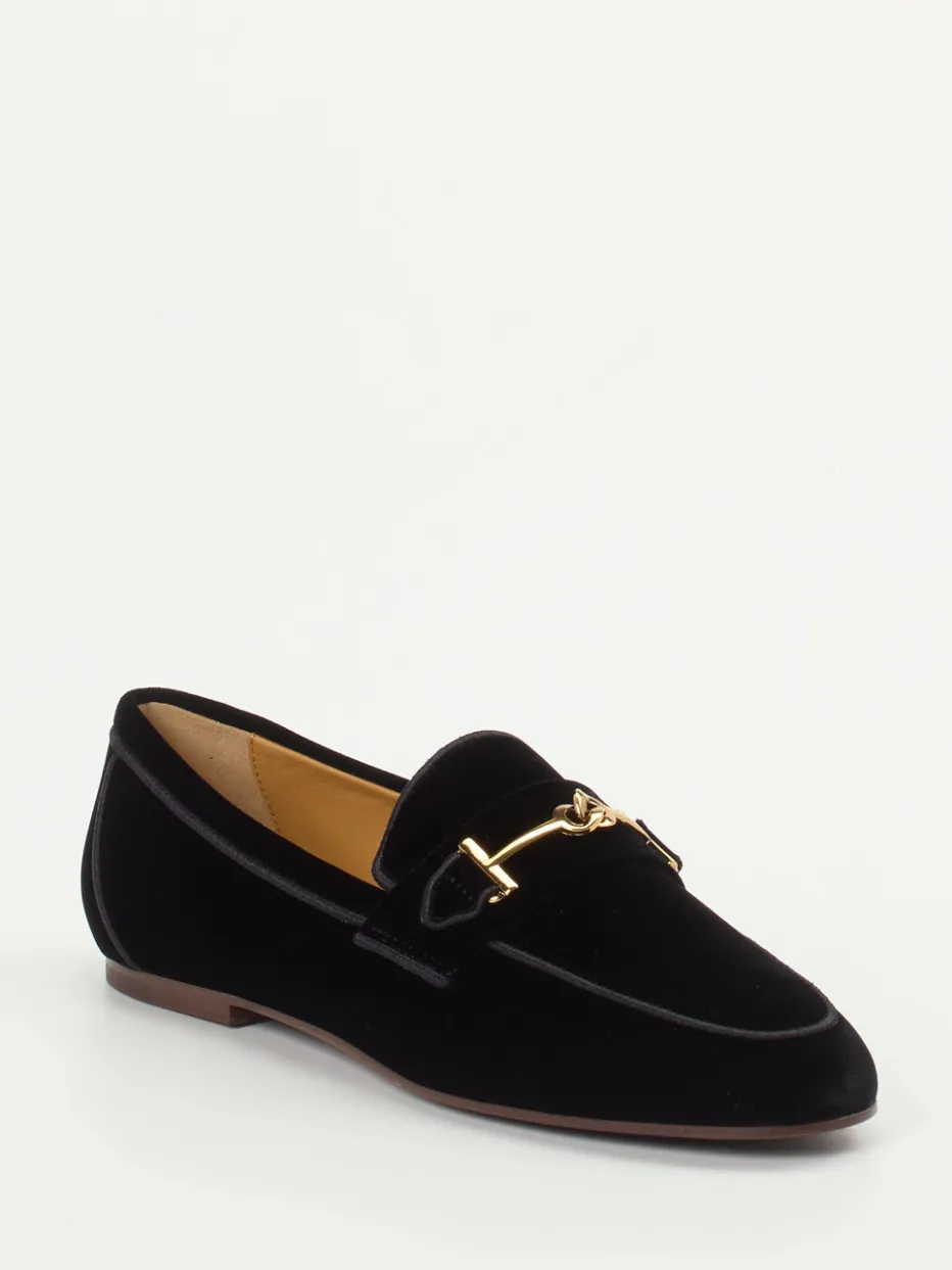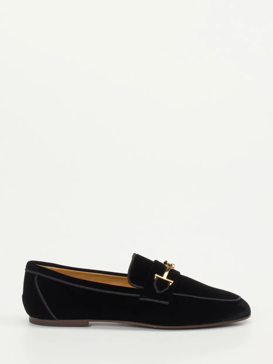 Dieser Damen-Loafer von Tod’s aus samtigem Veloursleder vereint klassische Form mit luxuriösem Minimalismus. Die vergoldete Spange und edle Verarbeitung betonen den Anspruch auf stilvolle Zurückhaltung.