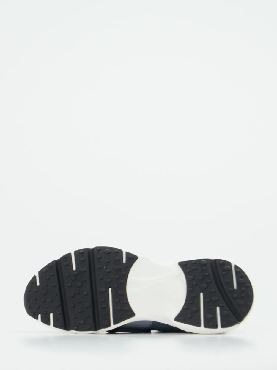 Komfort und Stil in modernem Strick.Die Marke Tod’s zeigt bei diesem Damen-Sneaker ihre luxuriöse Designkompetenz. Ideal für tägliche Erledigungen oder die nächste Reise, überzeugt der Slip-On durch Stretchstrick mit grober Struktur in Blaugrau. Eine dunkelblaue Ledergarnitur auf dem Blatt sowie eine Fersenlasche setzen dezente Akzente. Dank elastischem Band gelingt der Einstieg leicht, während die weich gepolsterte Innensohle für hohen Tragekomfort sorgt. Die sportliche Gummisohle mit markantem Noppenprofil betont den Streetwear-Charakter – ein vielseitiger Begleiter für Casual-Looks. Tod’s vereint italienische Handwerkskunst mit alltagstauglichem Komfortanspruch.