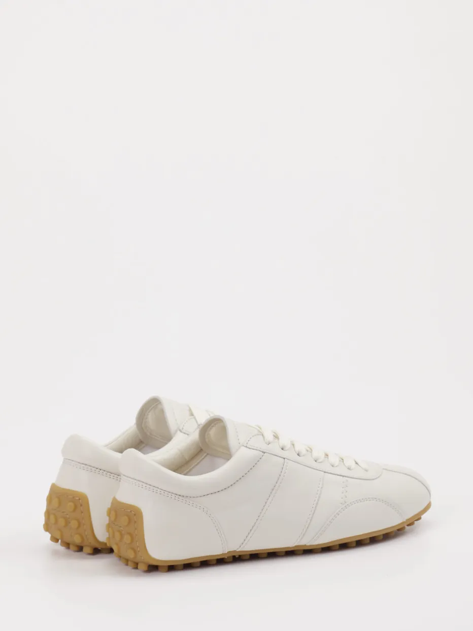 Mit glattem Lammleder, tonalen Details und ikonischer Gumminoppen-Sohle verbindet dieser Sneaker Minimalismus mit Retro-Charakter.