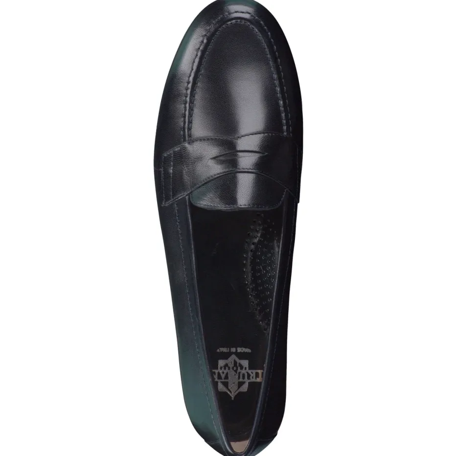 Dieser Damen-Loafer von Truman’s vereint geschmeidiges Lammleder mit klassischem Penny-Slot-Design und Vibram-Sohle – ein stilvoller Begleiter für anspruchsvolle Looks.