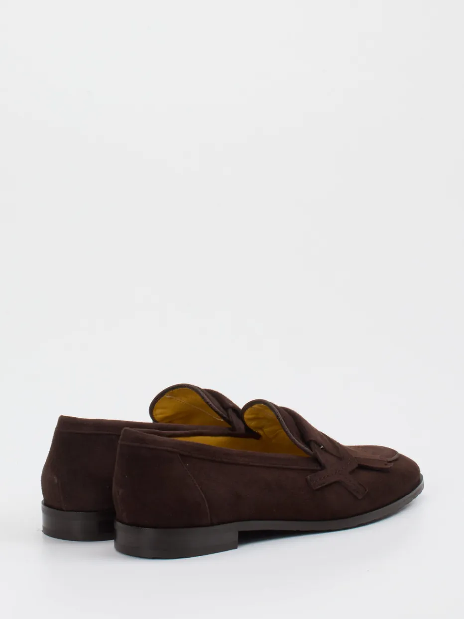 Stilsicher im Alltag und Büro.Die Marke Truman’s präsentiert einen klassischen Herren-Loafer aus edlem Veloursleder. Ideal für gepflegte Tagesoutfits oder den stilvollen Büroauftritt überzeugt das Modell mit dunkelbrauner Farbgebung, matter Oberfläche und schlanker Form. Fransenlasche und Zierspange setzen dezente Akzente im Stil der 70er. Das Lammnappa-Innenfutter sorgt für Tragekomfort, während die profilierte Gummisohle Trittsicherheit bietet. Inspiriert von „Quiet Luxury“ und Heritage-Design, passt der Loafer perfekt zu Chinos oder Wollhosen. Tradition trifft zeitgemäßes Understatement mit Handschuhkomfort.