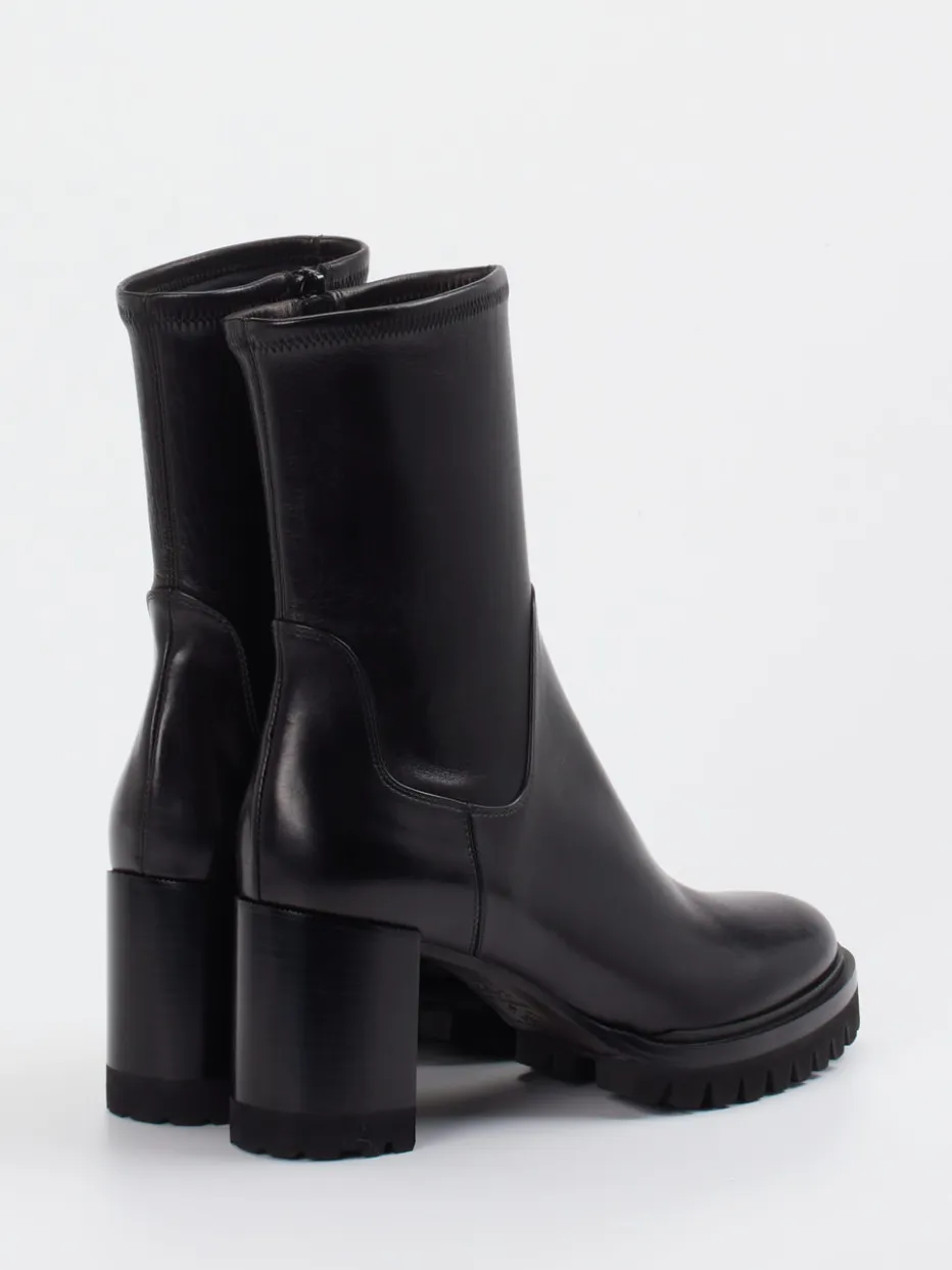 Glanzvoller Auftritt mit City-Charakter.Truman’s präsentiert eine Damen-Stiefelette, die Minimalismus mit Trendbewusstsein verbindet. Für modeaffine Alltagsmomente und anspruchsvolle Business-Settings bietet dieses Modell eine klare Silhouette und urban geprägte Funktionalität. Gefertigt aus hochwertigem Glattleder mit glänzender Oberfläche und strukturierter Schaftpartie strahlt die schwarze Stiefelette Eleganz im dezenten Ton-in-Ton-Stil aus. Ein innenliegender Reißverschluss sorgt für Komfort, während Blockabsatz und stark profilierte Gummisohle sicheren Stand im herbstlichen Großstadtalltag garantieren. Stilistisch folgt sie dem „Lug Sole“-Trend und lässt sich ideal zu Kaschmir und Lederaccessoires kombinieren. Ein stilvolles Statement urbaner Schlichtheit mit TRUMAN’S Handschrift.