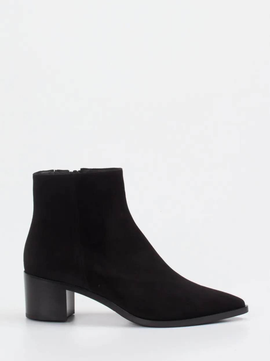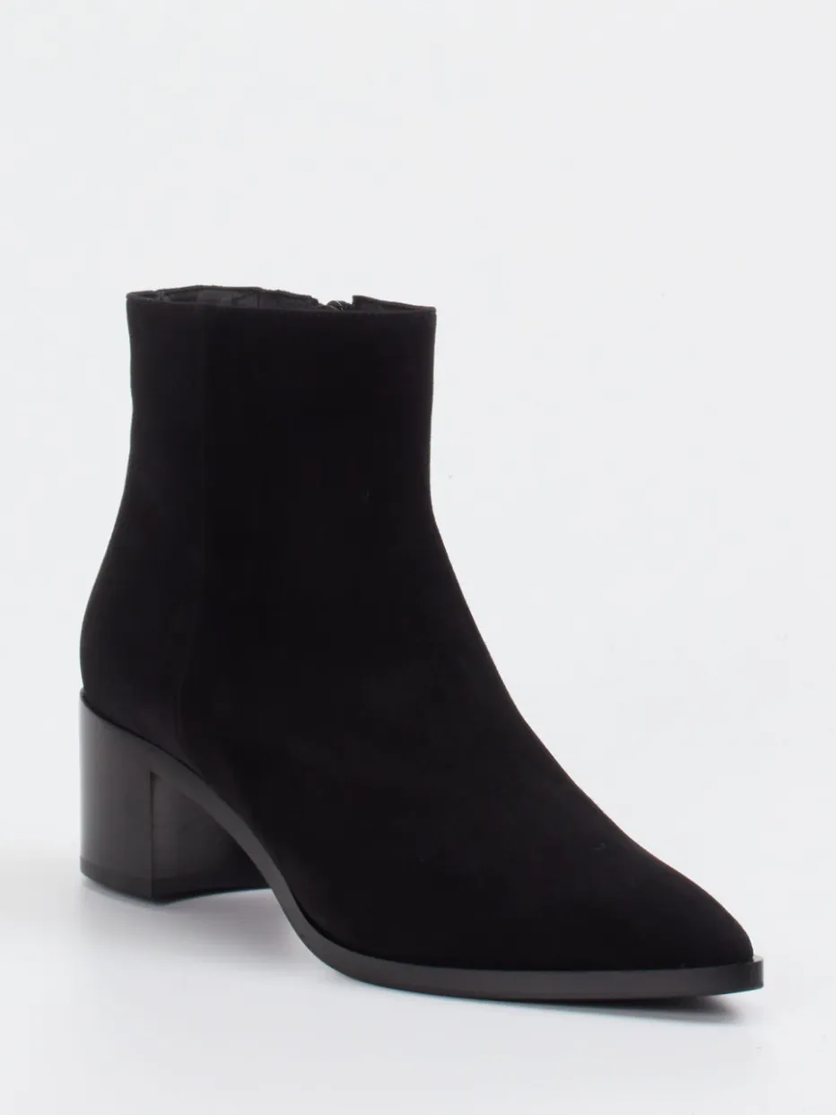 Puristische Eleganz mit hochwertigem Finish: Diese Ankle Boots aus schwarzem Veloursleder kombinieren zeitlose Formgebung mit dezenter Modernität.