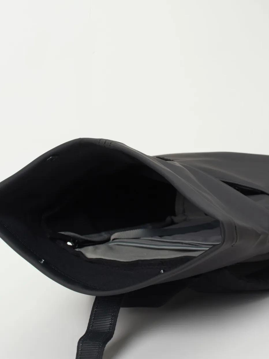 Urbaner Begleiter mit cleaner Silhouette: Ucon Acrobatics präsentiert einen Rolltop-Rucksack für Alltag und Büro. Die strukturierte, matte Oberfläche aus wasserabweisendem Textil zeigt sich in tiefem Schwarz und verkörpert urbanen Minimalismus. Der Rollverschluss mit Klettband, die gepolsterte Rückenpartie sowie das integrierte Laptopfach sorgen für Komfort und Ordnung. Dezente Ton-in-Ton-Prägung, klare Rechteckform und Trageoptionen wie verstellbare Schulterriemen oder Tragegriff unterstreichen den funktionalen Stil. Ideal für ein cleanes Gorpcore- oder Quiet-Luxury-Outfit. Ein durchdachter Tagesrucksack mit bewusst reduziertem Designanspruch – typisch Ucon Acrobatics.