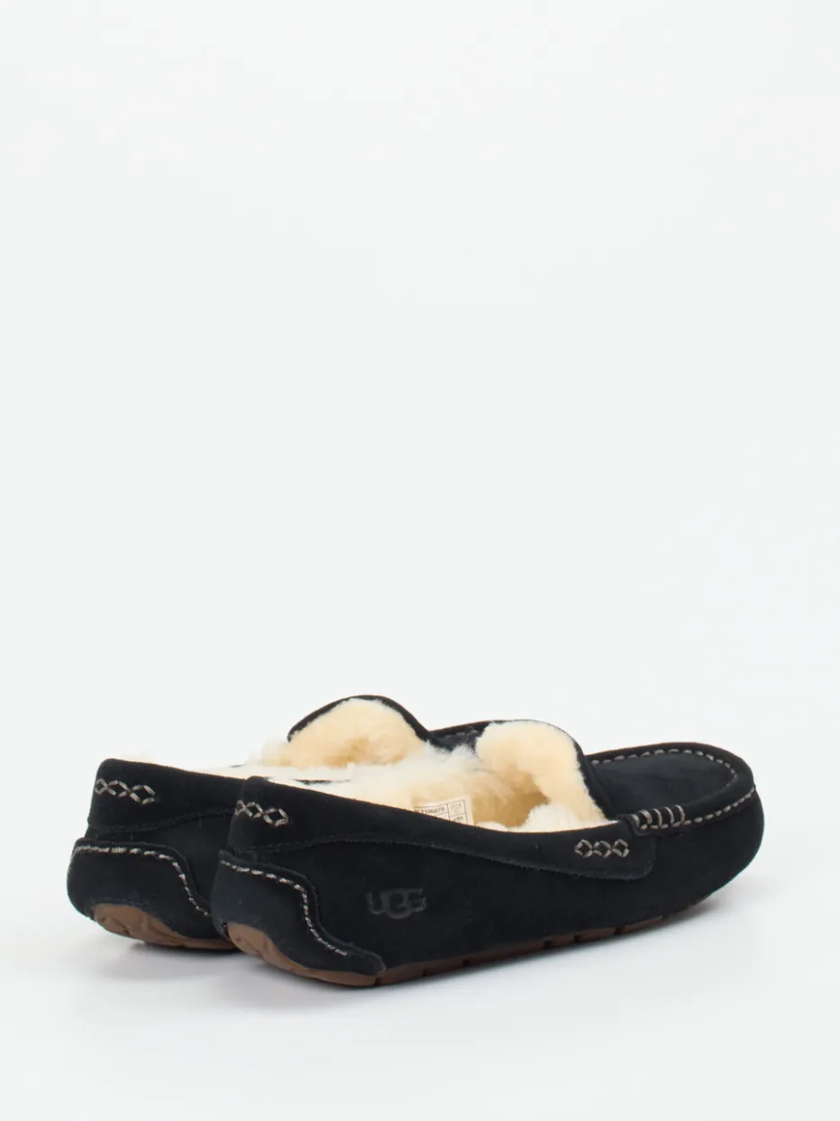 Veloursleder in edlem Schwarz und echtes Lammfellfutter vereinen sich bei diesem UGG-Slipper zu maximalem Komfort – auch an kälteren Tagen.