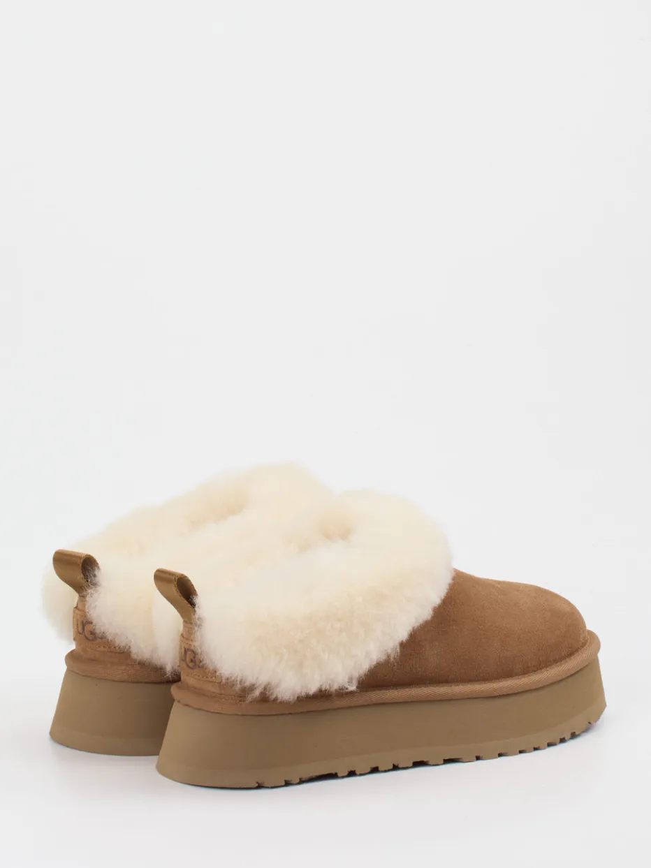 UGG präsentiert einen plüschigen Plattform-Hausschuh für Damen.