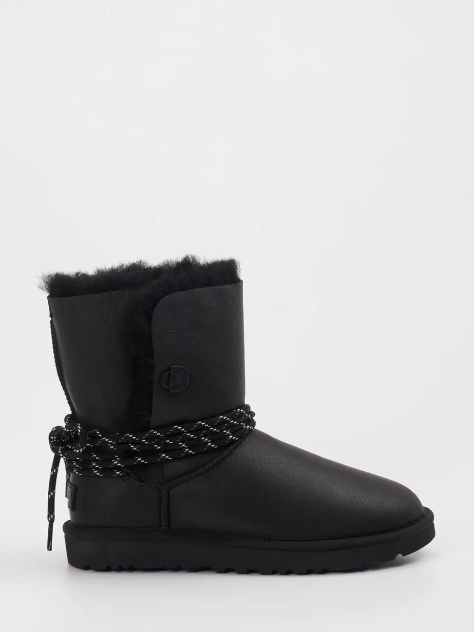 Diese UGG-Winterboots verbinden mattes Leder mit gemütlichem Innenfutter und reflektierender Schnürung – ideal für stylische Wintertage mit Komfortanspruch.