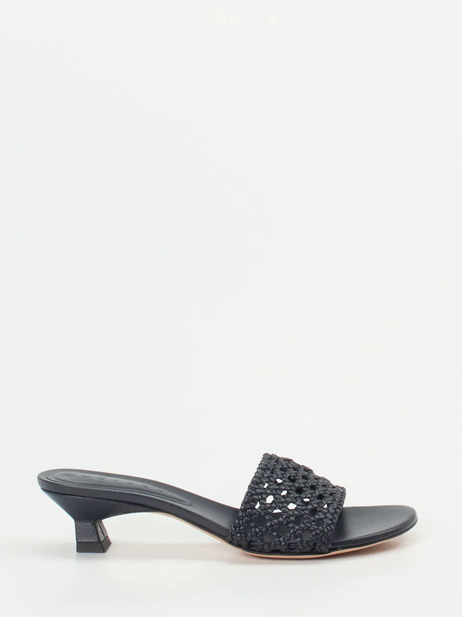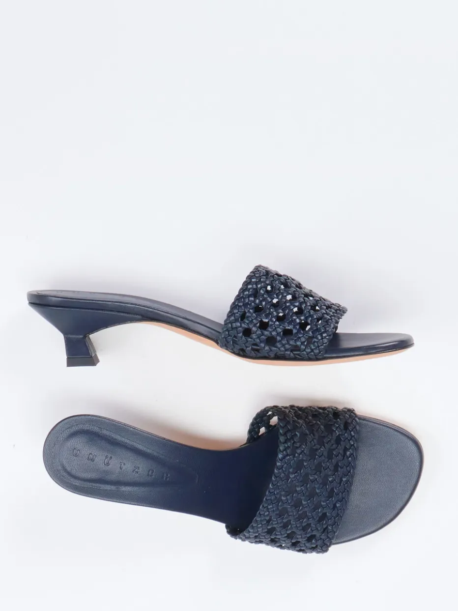 Mediterrane Leichtigkeit trifft auf moderne Zurückhaltung: Diese handgefertigten Mules kombinieren ein edles Flechtleder mit femininer Silhouette und komfortabler Absatzhöhe.