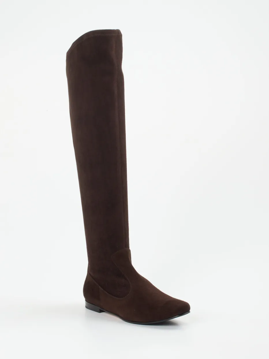 Minimalismus auf ganzer Linie.Die Marke Unützer präsentiert mit diesem Damen-Stiefel einen stilvollen Overknee im Zeichen zeitgemäßer Zurückhaltung. Ob zum Wollmantel im Büro oder für urbane Spaziergänge – das dunkelbraune Veloursleder, samtig angeschliffen und matt, steht für feine Haptik und subtile Eleganz. Der hohe, schmale Schaft verläuft asymmetrisch und bringt moderne Spannung ins klassische Design. Ohne Verschluss, mit flach gearbeiteter Gummisohle, ordnet sich der Look funktional dem Reitstil und Trendthemen wie Quiet Luxury unter. Besonders stilvoll in Kombination mit Kaschmir oder Lederaccessoires. Ein exklusiver Stiefel mit formvollendetem Understatement – typisch Unützer.