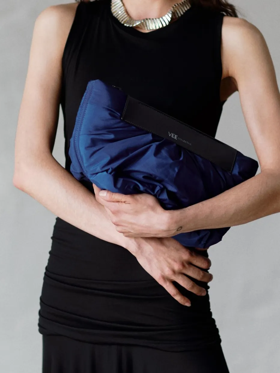 Diese blaue Umhängetasche der Marke VeeCollective Berlin verkörpert die Modernität des jungen Labels. Das Obermaterial aus wasserabweisendem, recyceltem Ripstop-Nylon zeichnet sich durch seine unnachahmliche Leichtigkeit und Robustheit aus. Der mit veganem Kunstleder bezogene Henkel kann mit einem beiliegenden Schulterriemen ergänzt werden. Ihre wichtigsten Habseligkeiten wie Handy und Portemonnaie lassen sich in den Fächern des orangefarbenen Innenraumes gut verstauen. Die Tasche ist mit zwei sportlichen Zippern verschließbar. – Obermaterial: Ripstop Nylon – Futter: Textil – Farbe: Blau – Größe: ca. 20 x 30 x 12 cm (H x B x T) – Henkel: ca. 30 cm – Schulterriemen: max. ca. 125 cm, abnehm-und verstellbar – Verschluss: Reißverschluss – Innen: ein Steckfach, ein Reißverschlussfach – Extra: eine herausnehmbare, faltbare Innentasche 12 x 16 cm – Außen: ein weiteres Reißverschlussfach