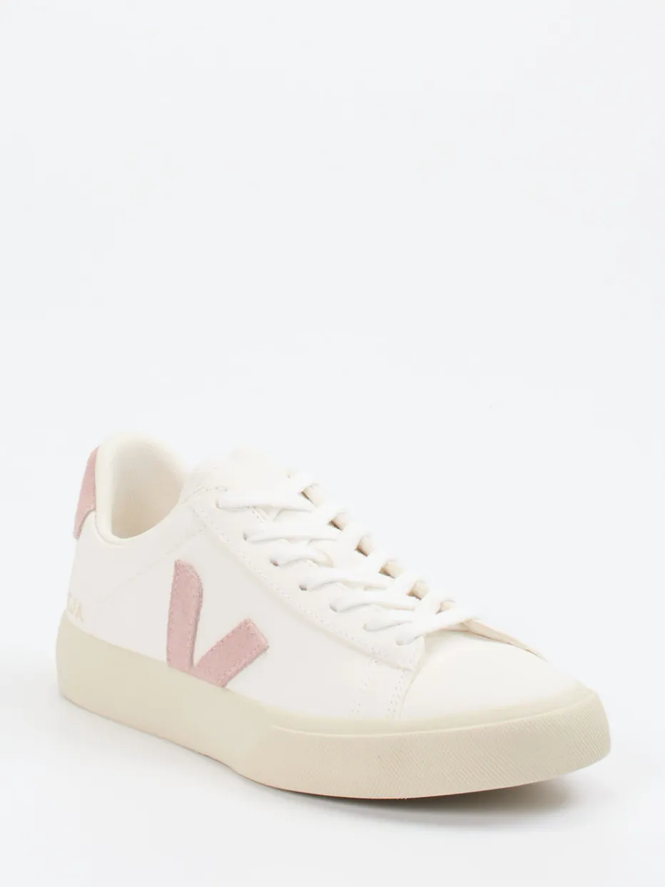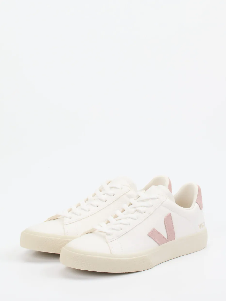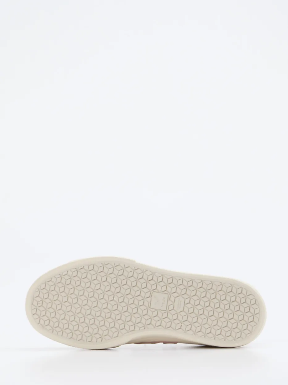 Dieser minimalistische Sneaker von VEJA kombiniert nachhaltige Materialien mit einer ruhigen Farbpalette und setzt subtile Designakzente in Altrosa.