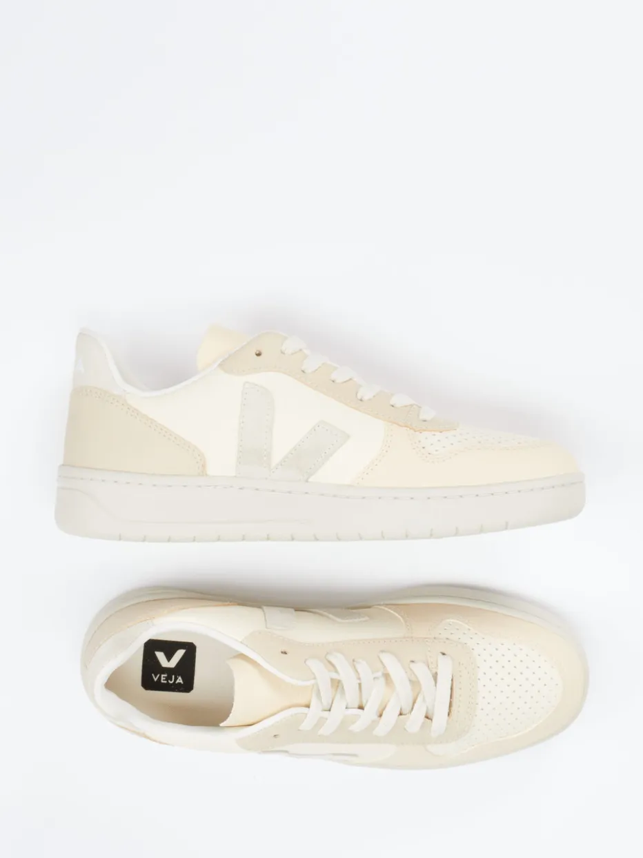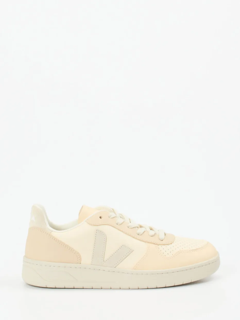 Zeitloser Look trifft modernes Statement.VEJA präsentiert mit diesem Low-Top-Sneaker ein klares Highlight für Fans nachhaltiger Streetwear. Im urbanen Alltag überzeugt das Modell durch seine materielle Hochwertigkeit: Glattes Leder mit mattem Finish wird durch eine perforierte Zehenpartie und ein tonales V-Logo modern akzentuiert. Die cremebeigen Nuancen unterstreichen die minimalistische Linienführung und sorgen für vielseitige Kombinierbarkeit. Eine griffige Gummisohle und das atmungsaktive Textilfutter bieten Komfort für jeden Tag. Stilistisch verortet zwischen Retro Court-Vibes und „Quiet Luxury“-Elementen, ist dieser Unisex-Sneaker ein Must-have für bewusste Ästheten. Nachhaltigkeit und dezentes Design verbinden sich hier zu markentypischer Alltagstauglichkeit.