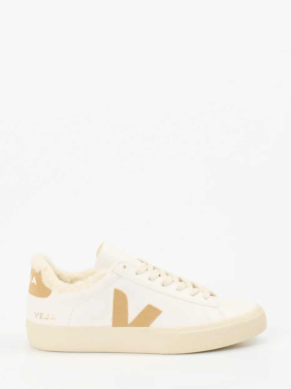 Wärme trifft auf Stil in dezentem Creme.VEJA präsentiert mit diesem Unisex-Sneaker ein komfortbetontes Modell für entspannte Alltagssituationen. Das vegane Glattleder wird durch ein flauschiges Innenfutter in Teddyfell-Optik ergänzt – ideal für kalte Tage. Der klassische Low-Top-Schnitt mit tonalen Nähten und flacher Silhouette betont den reduzierten Look. Ein kontrastfarbiges Logo aus Veloursleder setzt einen markanten Akzent an Ferse und Seite. Die griffige Gummisohle sorgt für sicheren Halt. Kombiniert mit einer Steppjacke und Cordhose entsteht ein harmonisches Casual-Outfit im Trend „Tonal Neutrals“. Nachhaltigkeit und Komfort machen dieses Modell zu einem typischen Vertreter der Marke VEJA.