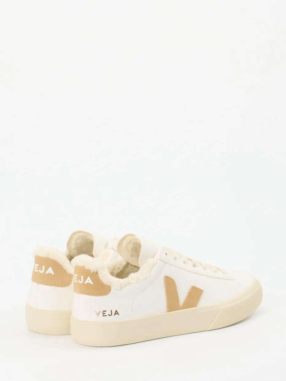 Dieser minimalistische Sneaker von VEJA kombiniert veganes Glattleder mit wärmender Teddyfell-Optik – eine stilvolle Lösung für kühle Tage.