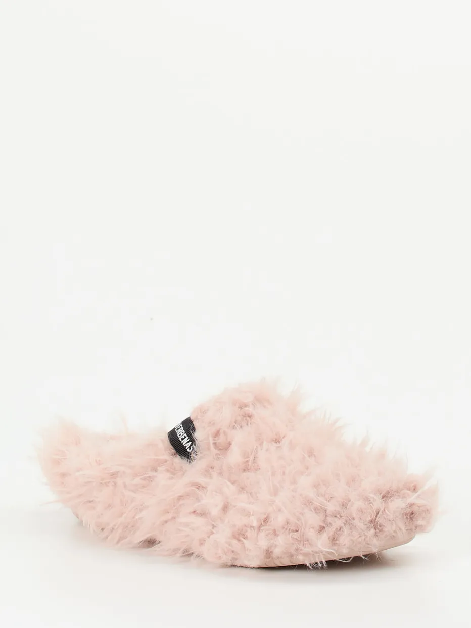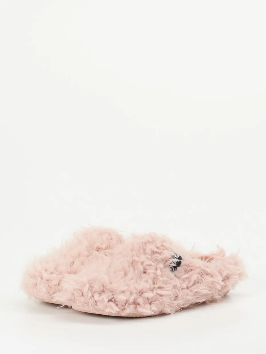 Ob beim Lesen, Serienmarathon oder Frühstück am Wochenende – das rosa Modell mit hochwertigem Textilmaterial begeistert durch sein besonders weiches Kunstfellfutter und die bequeme Schlupfform. Die geschlossene, rund geformte Silhouette und das strukturierte Fußbett sorgen für Stabilität und angenehmen Halt. Der auffällige Labelpatch auf dem Spann sowie die strukturierte Gummisohle geben dem Look eine trendige Note, inspiriert vom Loungewear-Stil der aktuellen Saison. Kombiniert mit Jogginghose oder Wollstrick perfekt inszenierbar.