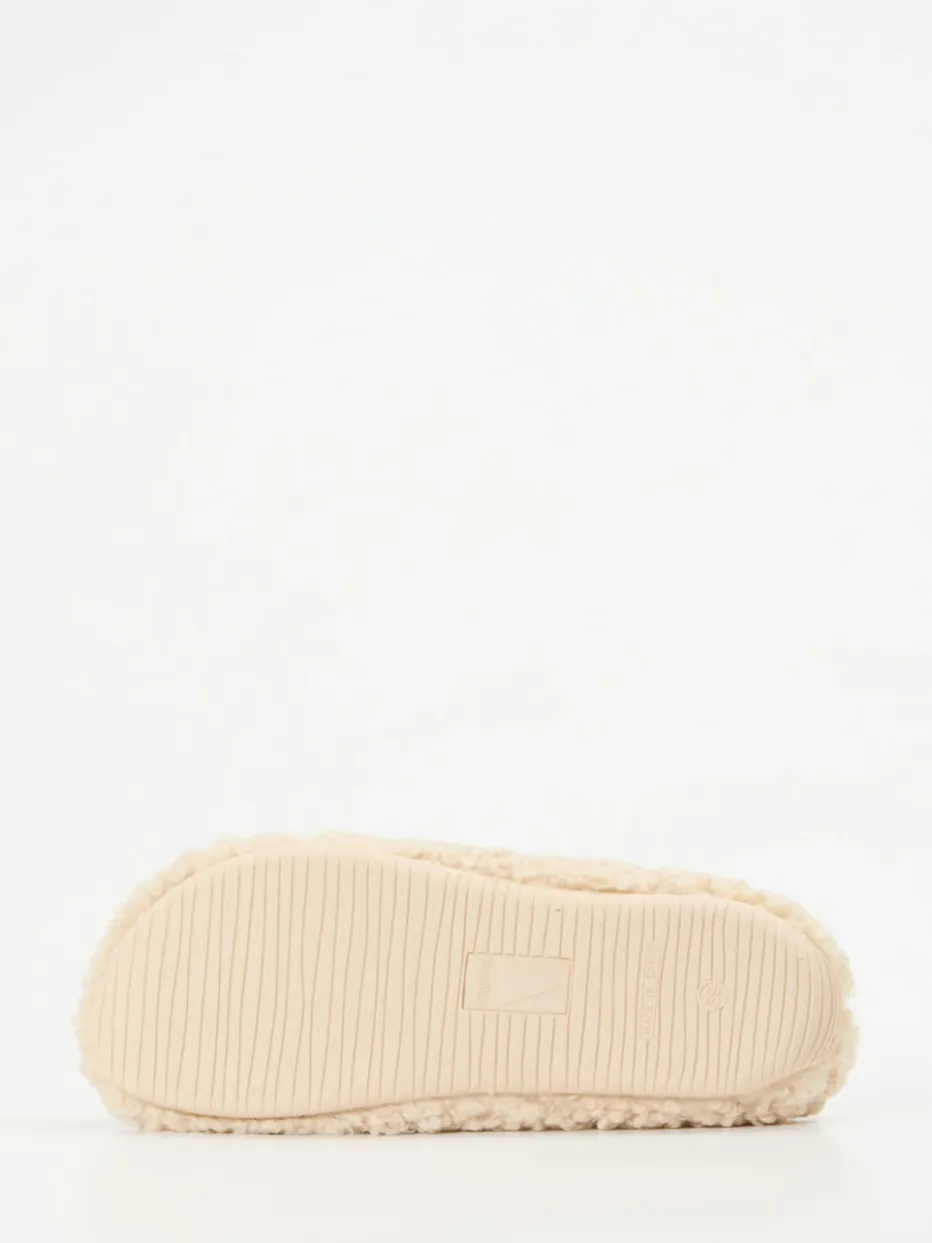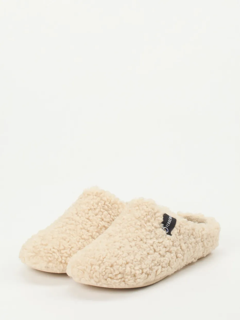 Weichheit trifft Funktionalität.Verbenas präsentiert mit diesen Pantoffeln ein wärmendes Loungewear-Essential. Ob beim Lesen auf dem Sofa oder auf dem Weg in die Küche – das flauschige, seidig weiche Textilfell in sanftem Cremebeige sorgt für spürbare Gemütlichkeit. Die geschlossene Vorderpartie in Mule-Form wird durch eine offene Ferse ergänzt, während das schaumgepolsterte Innenfutter zusätzlichen Komfort bietet. Ein seitliches Markenlabel verleiht dem Design dezente Wertigkeit. Die strukturierte Gummisohle sorgt für trittsicheren Halt auf glatten Böden. Gemacht für stilvollen Winterkomfort zu Hause – mit der Qualität, die Verbenas auszeichnet.