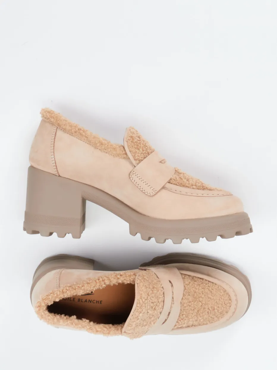 Damen Voile Blanche – Loafer aus Nubukleder mit Teddyfell