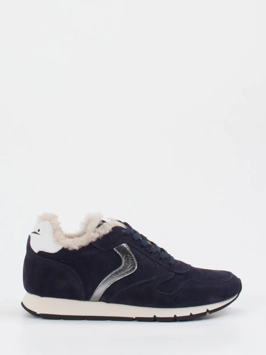 Eleganz trifft auf Wintertauglichkeit.Voile Blanche präsentiert diesen Damen-Winter-Sneaker im beliebten Retro-Runner-Stil. Für entspannte Spaziergänge bei frostigem Wetter bietet das dunkelblaue Veloursleder mit samtig-matter Oberfläche robusten Schutz und ein stilbewusstes Erscheinungsbild. Die hellgraue Lammfellfütterung und das fellbezogene Fußbett schenken komfortable Wärme. Silberfarbene Metallic-Applikationen setzen moderne Akzente, während weiße Kontrastdetails an Ferse und Zunge den Look betonen. Die leicht keilförmige Profilsohle aus Gummi garantiert Trittsicherheit. Passend zu Casual-Winterkleidung oder Steppjacke in Beige. Raffiniert verarbeitet für anspruchsvolle Stilbedürfnisse – typisch Voile Blanche.