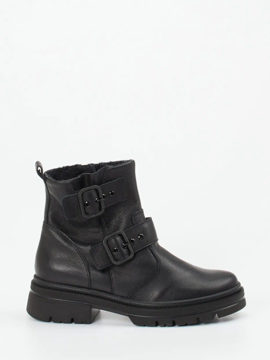 Komfort trifft urbane Lässigkeit.Waldläufer präsentiert eine Damen-Stiefelette im Biker-Stil, gefertigt aus edlem Kalbleder. Wenn Wetter und Untergrund herausfordernd werden, bietet dieses Modell sicheren Halt und wohltuende Wärme. Das schwarze Kalbleder mit genarbter Optik unterstreicht die markante Silhouette mit mittelhohem Schaft. Zwei funktionale Schnallenriemen und ein seitlicher Reißverschluss sorgen für Stabilität und ein lässiges Statement. Das Innenfutter aus wärmender Textilfaser sowie die profilierte Gummisohle machen die Stiefelette zu einer verlässlichen Begleiterin bei Outdoor-Ausflügen und im Street-Look. Der Stil passt ideal zu Steppjacken oder monochromen Outfits. Typisch Waldläufer: maximaler Tragekomfort kombiniert mit souveräner Optik.