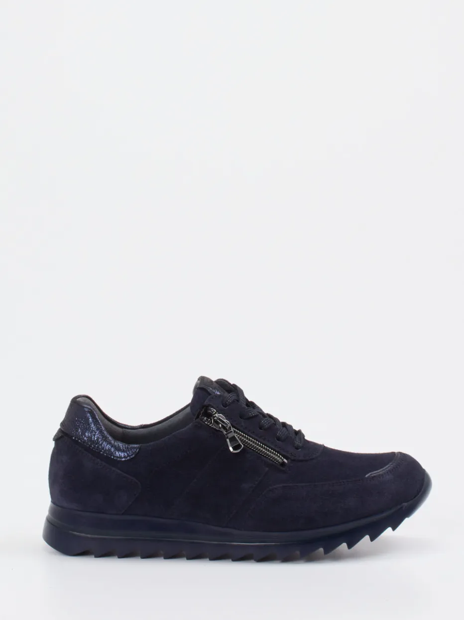 Minimalistisch, praktisch, stilvoll.Waldläufer überzeugt auch in der Kategorie Komfort-Sneaker mit einem Modell, das Alltagstauglichkeit neu definiert. Für entspannte Spaziergänge oder Erledigungen in der Stadt liefert dieser dunkelblaue Sneaker zuverlässigen Komfort bei jedem Schritt. Das samtig angeschliffene Veloursleder wird durch glänzende Akzente im Fersenbereich elegant ergänzt. Seitlicher Reißverschluss und Schnürung ermöglichen komfortables Hineinschlüpfen und optimalen Sitz. Die profilierte Gummisohle sorgt für Halt – ob auf Asphalt oder im Innenbereich. Stilistisch bewegt sich der Schuh zwischen Minimalismus und aktuellem Comfort-Core-Trend und lässt sich hervorragend zu Jeans oder Leggings in gedeckten Farbtönen tragen. Waldläufer steht für Passformvielfalt und hochwertige Materialien im komfortablen Design.
