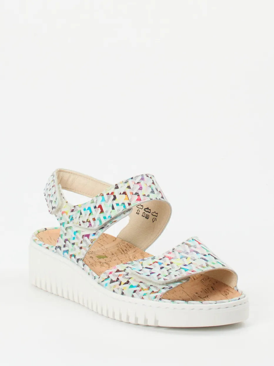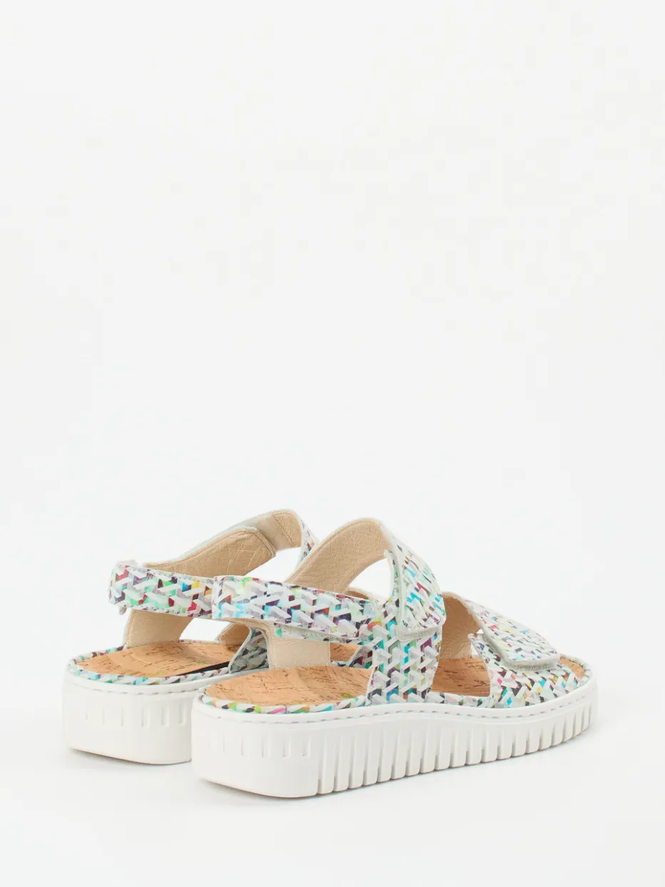 Diese Sandale von Waldläufer kombiniert gepolsterten Komfort mit modischem Multicolor-Flechtmuster – ideal für stilbewusste Trägerinnen mit Anspruch an Bequemlichkeit.